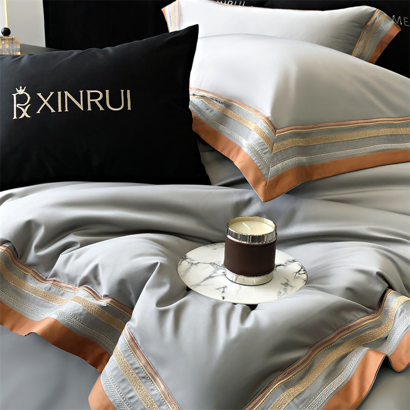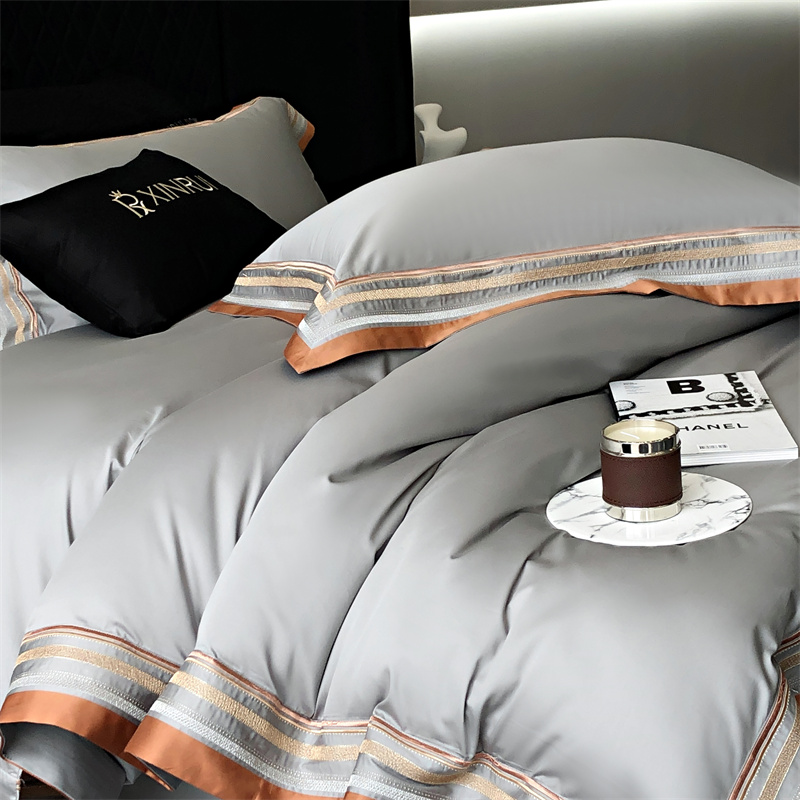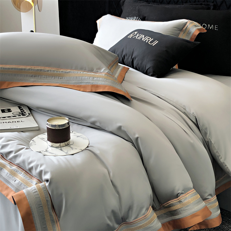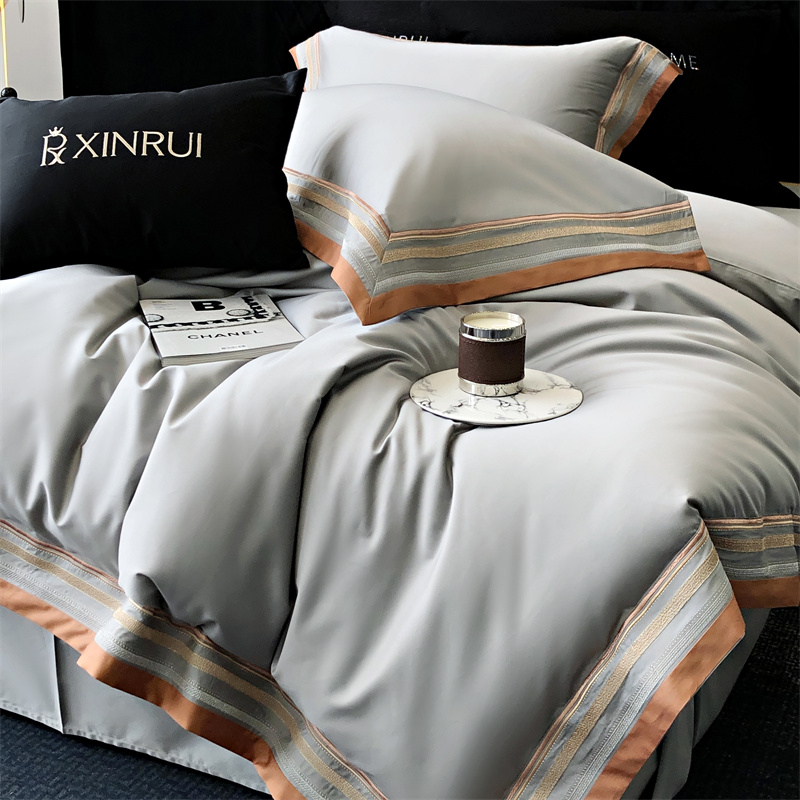 商品名称:馨蕊家居 2024新款春夏新品100S高奢简约长绒棉四件套 棉露晞-高级灰