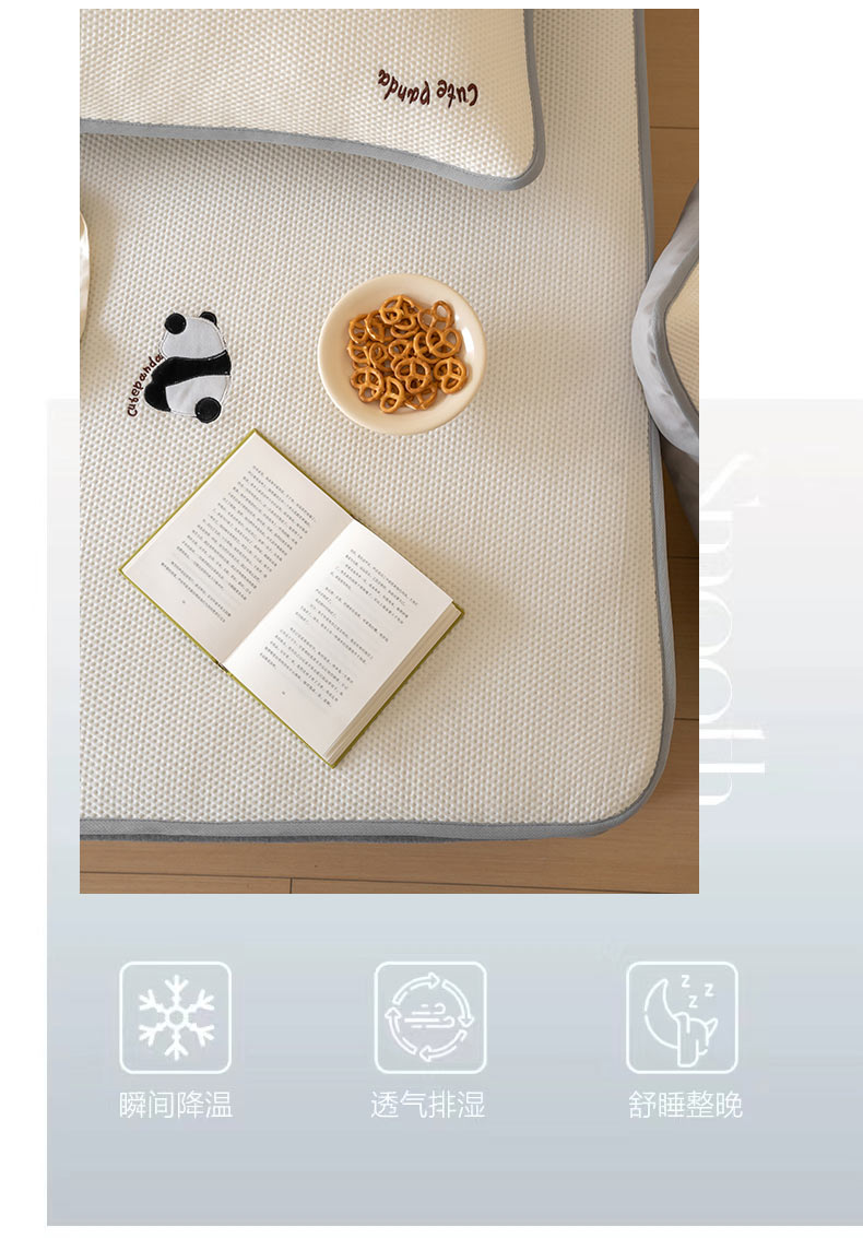 商品名称:FORTWO家纺原创设计(FOR TWO家纺) 2024新款绣花凉席系列 熊猫-奶昔白