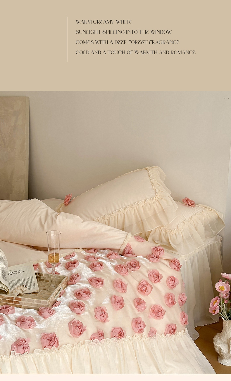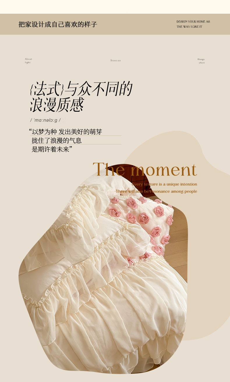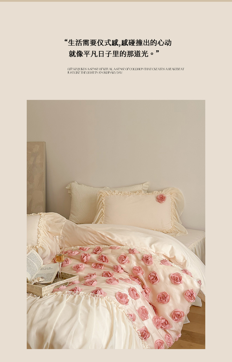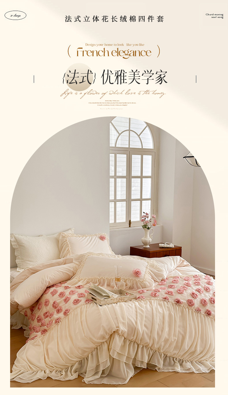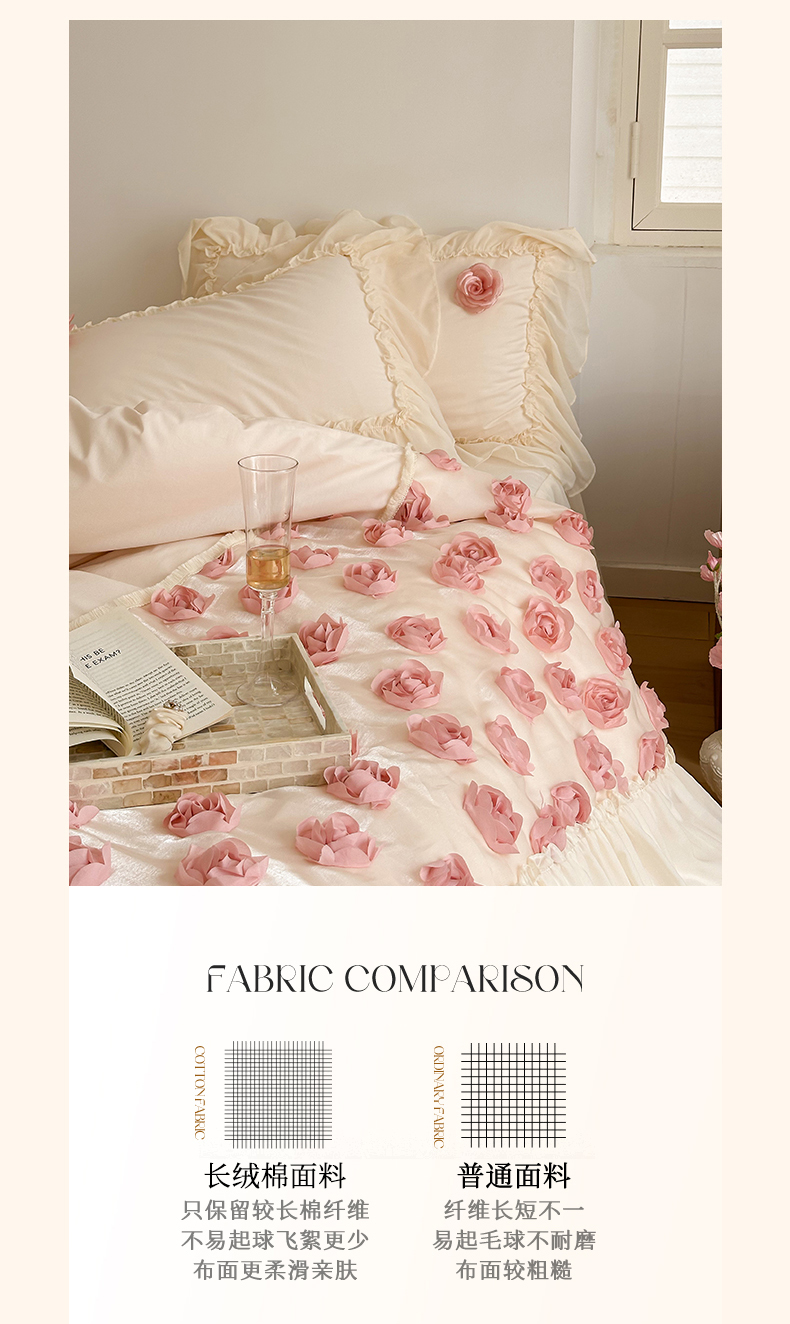 商品名称:(总)婳庭家居 2024新款刺绣玫瑰全棉长绒棉法式公主风四件套--粉玫庄园场景二