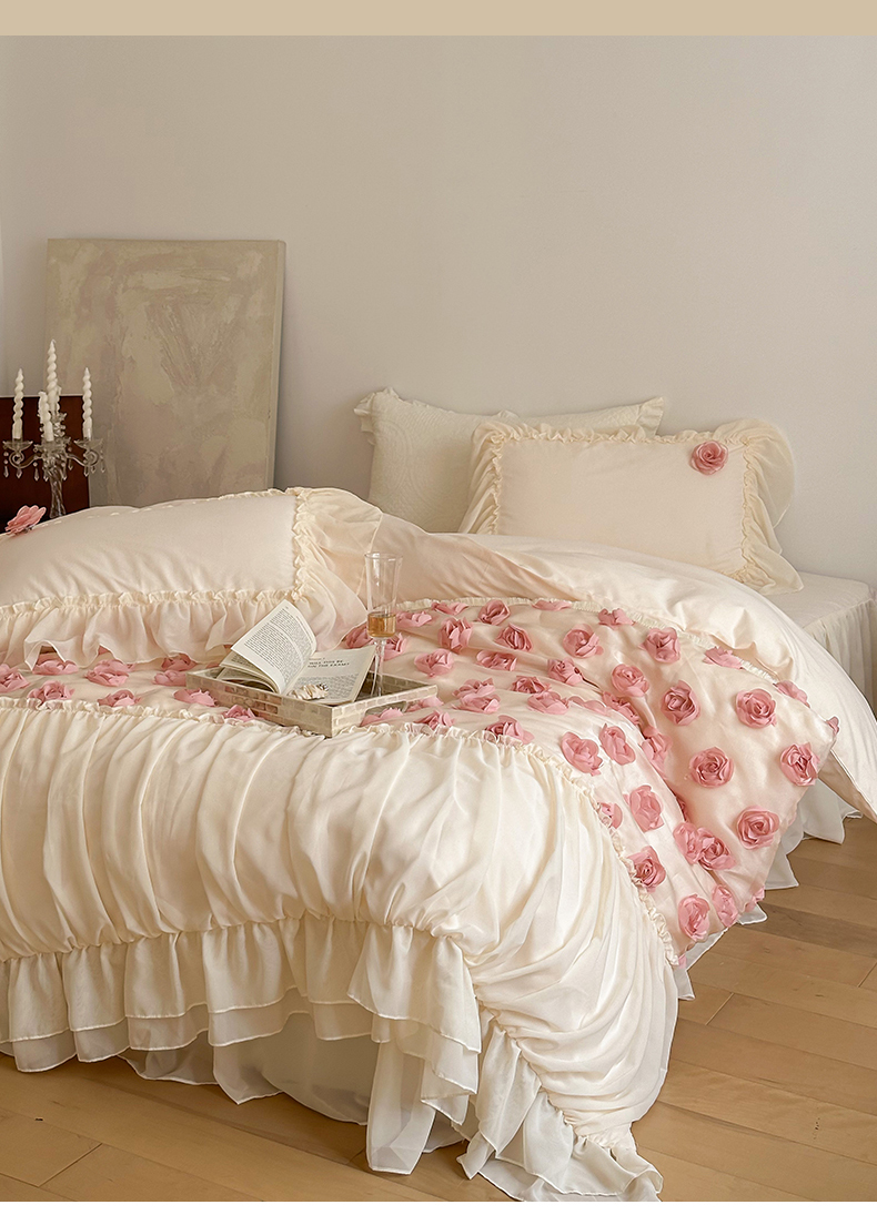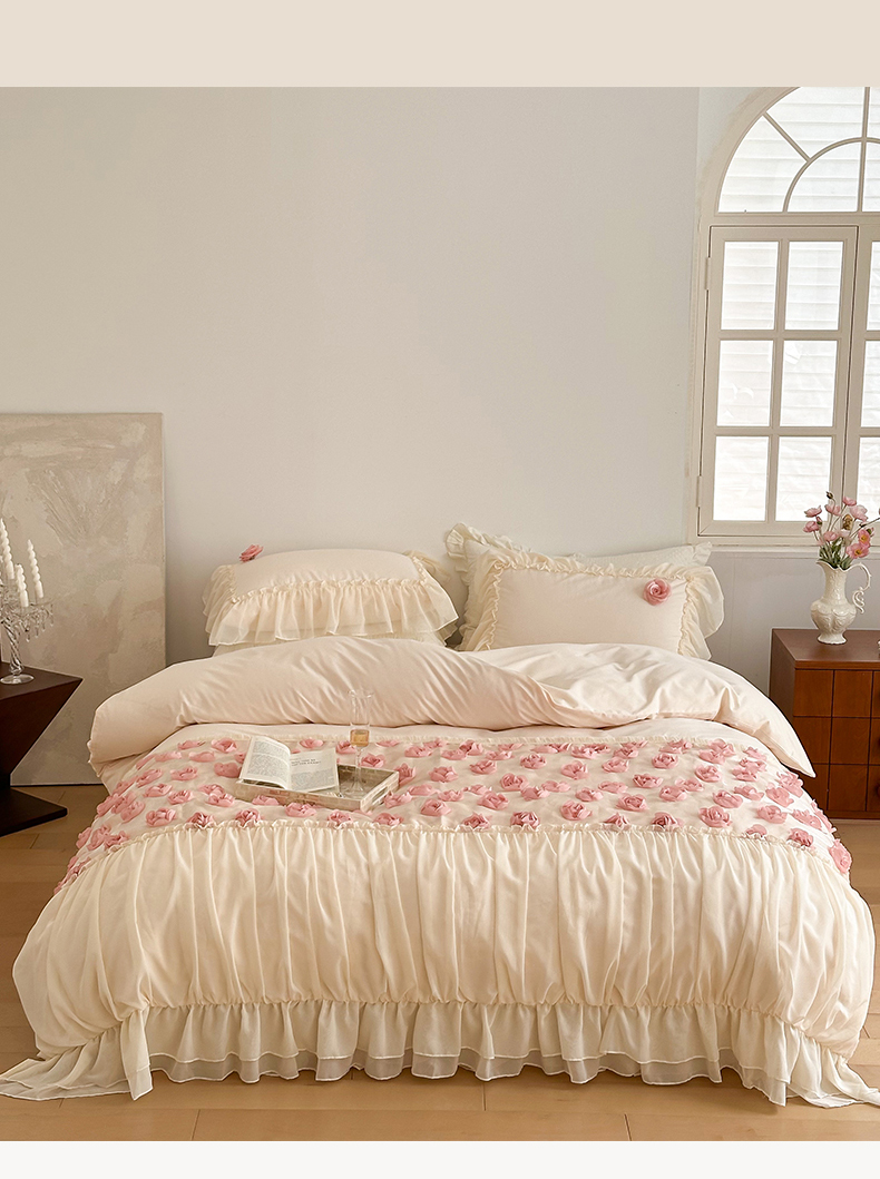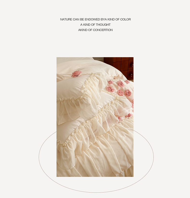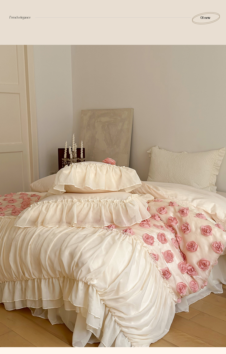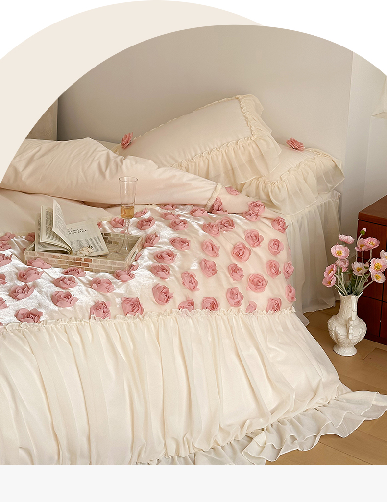 商品名称:(总)婳庭家居 2024新款刺绣玫瑰全棉长绒棉法式公主风四件套--粉玫庄园场景二
