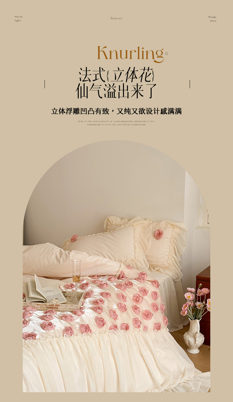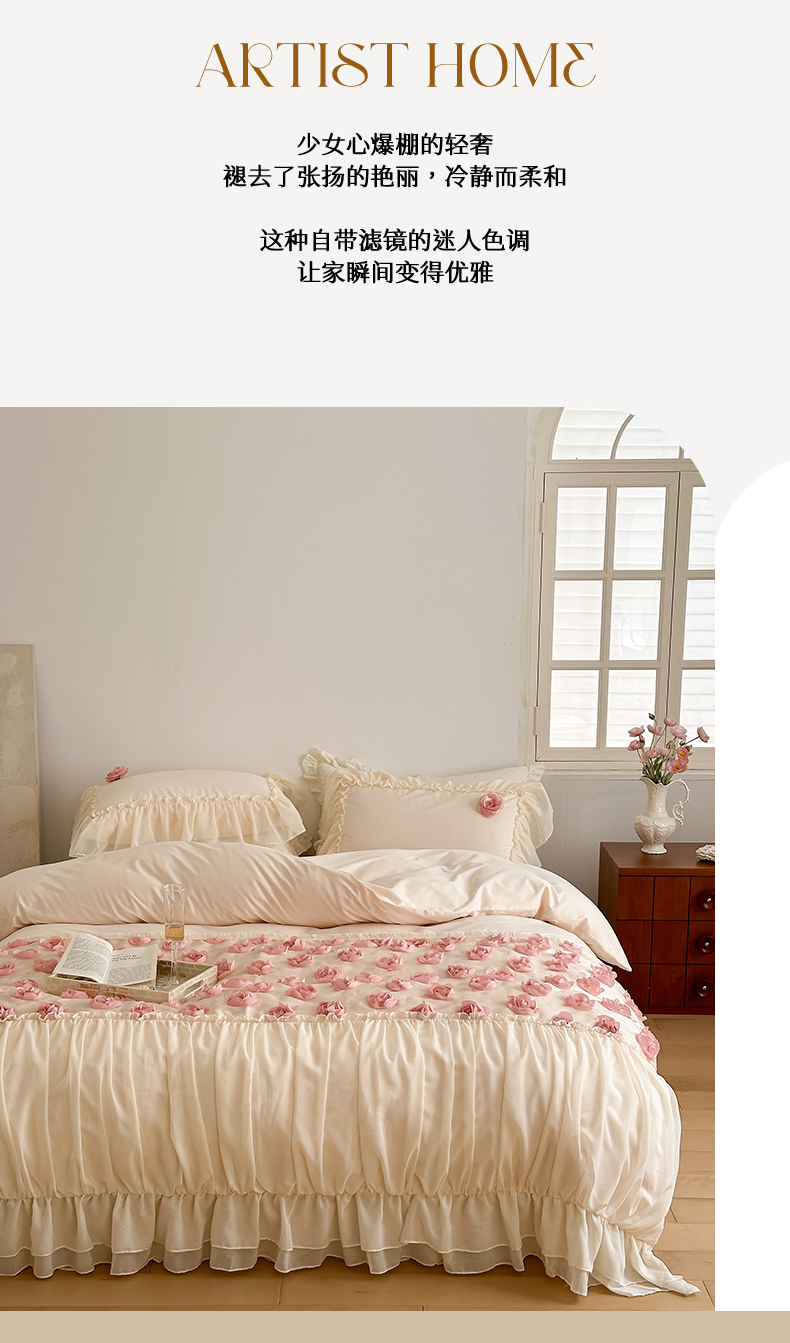 (总)婳庭家居 2024新款刺绣玫瑰全棉长绒棉法式公主风四件套--粉玫庄园场景二