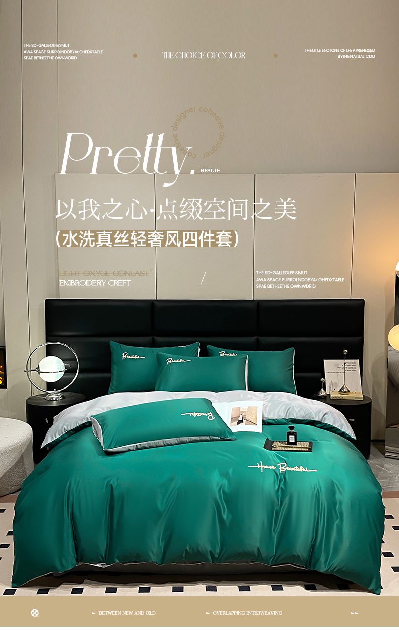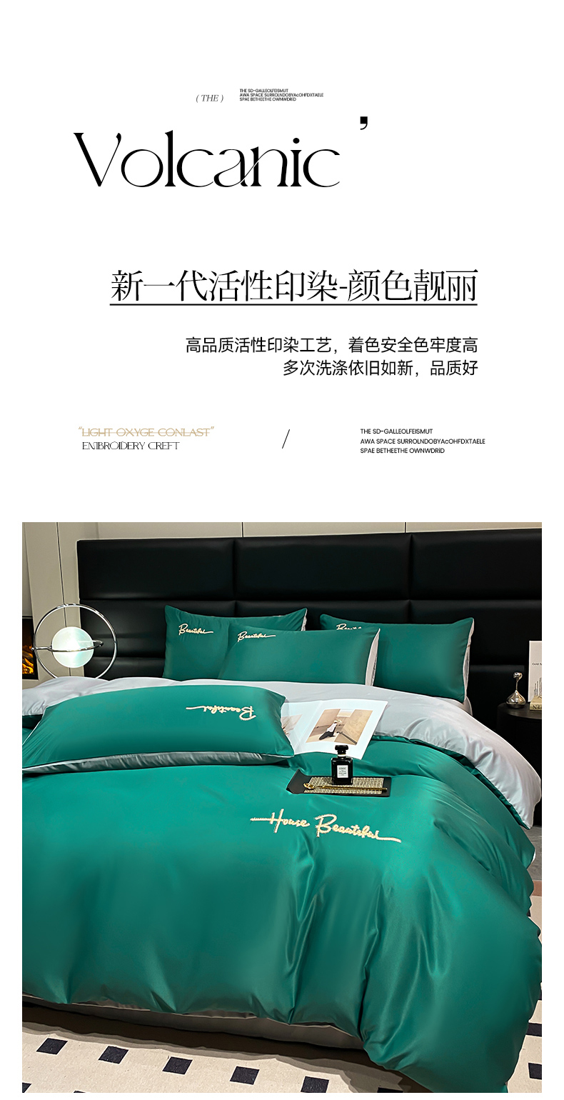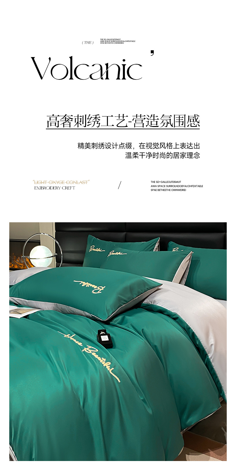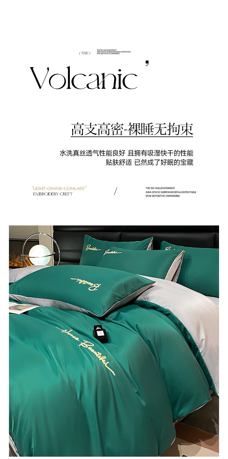 澳梵 2024新款水洗真丝刺绣四件套 芭特芙-宝石绿
