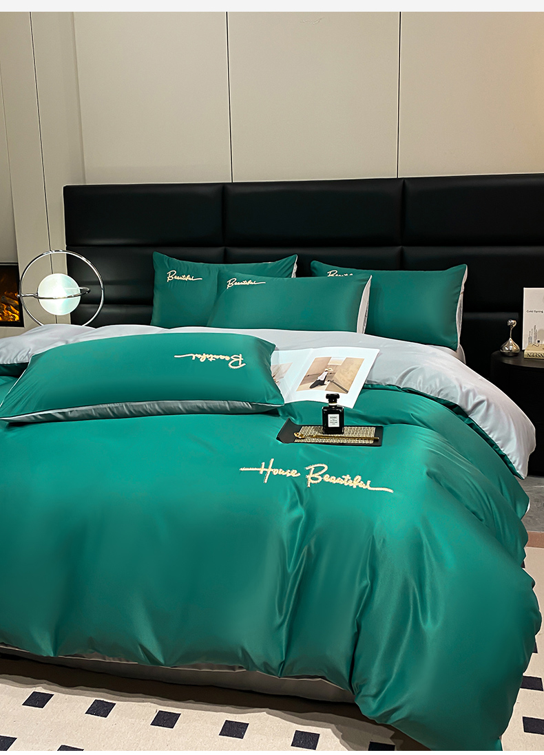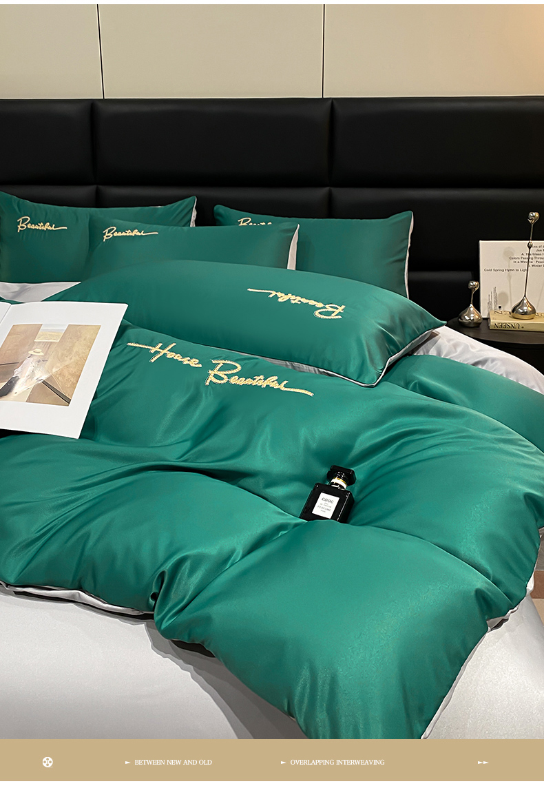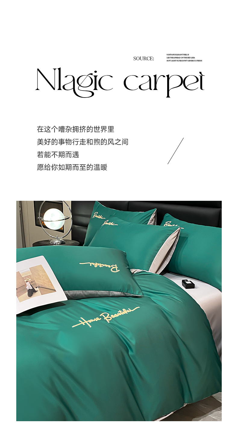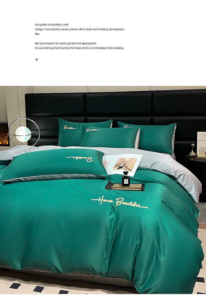 澳梵 2024新款水洗真丝刺绣四件套 芭特芙-宝石绿