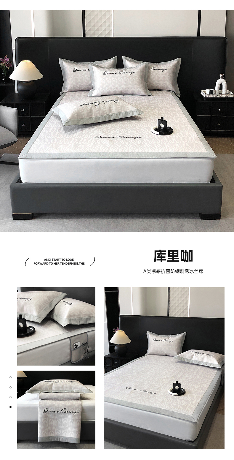 商品名称:三味舒屋 2025新款凉感抗菌防螨刺绣冰丝席(新升级7A抗菌)--库里 库里咖-床席款