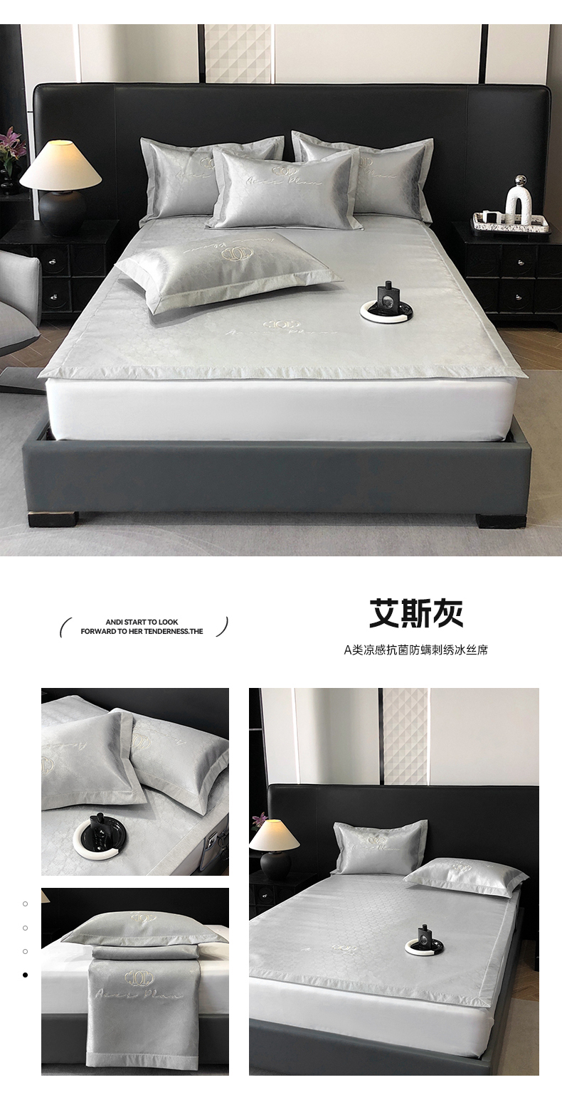 三味舒屋 2025新款凉感抗菌防螨刺绣冰丝席(新升级7A抗菌)--艾斯 艾斯灰-床席款