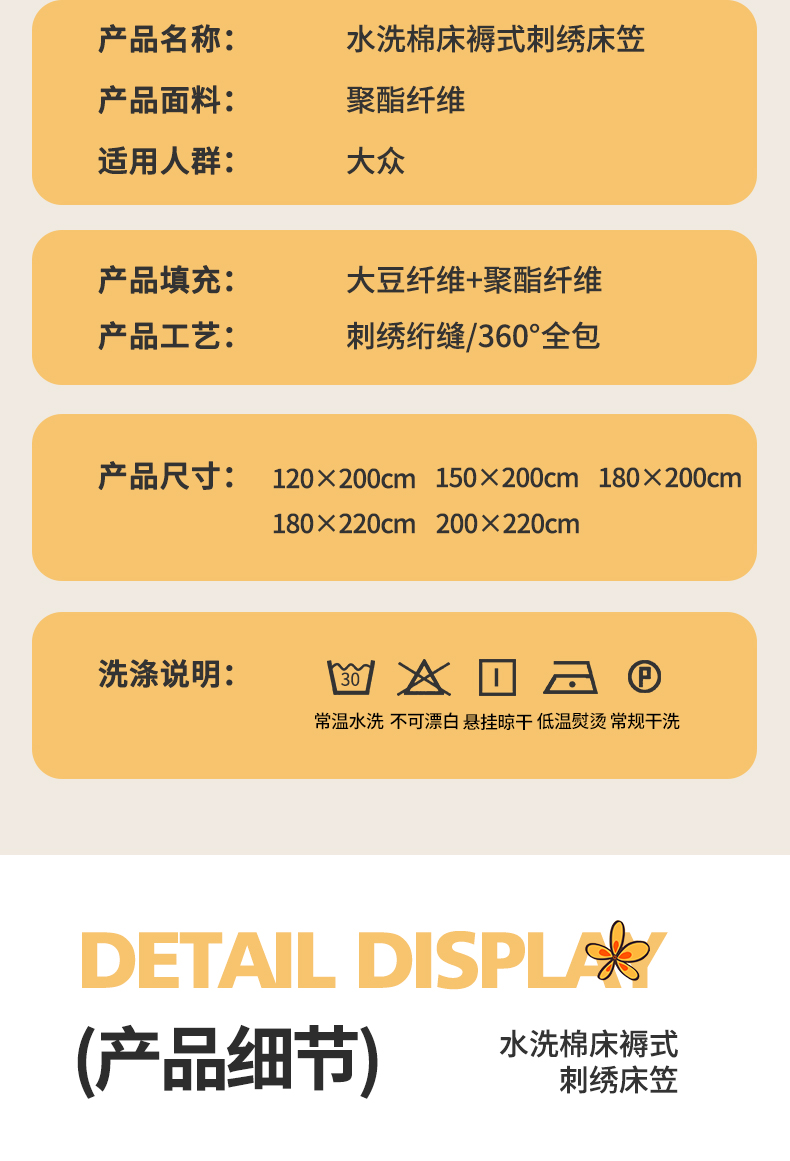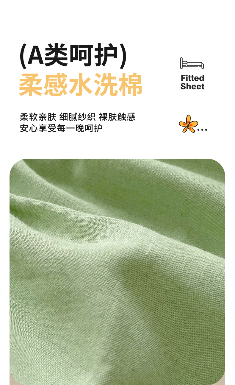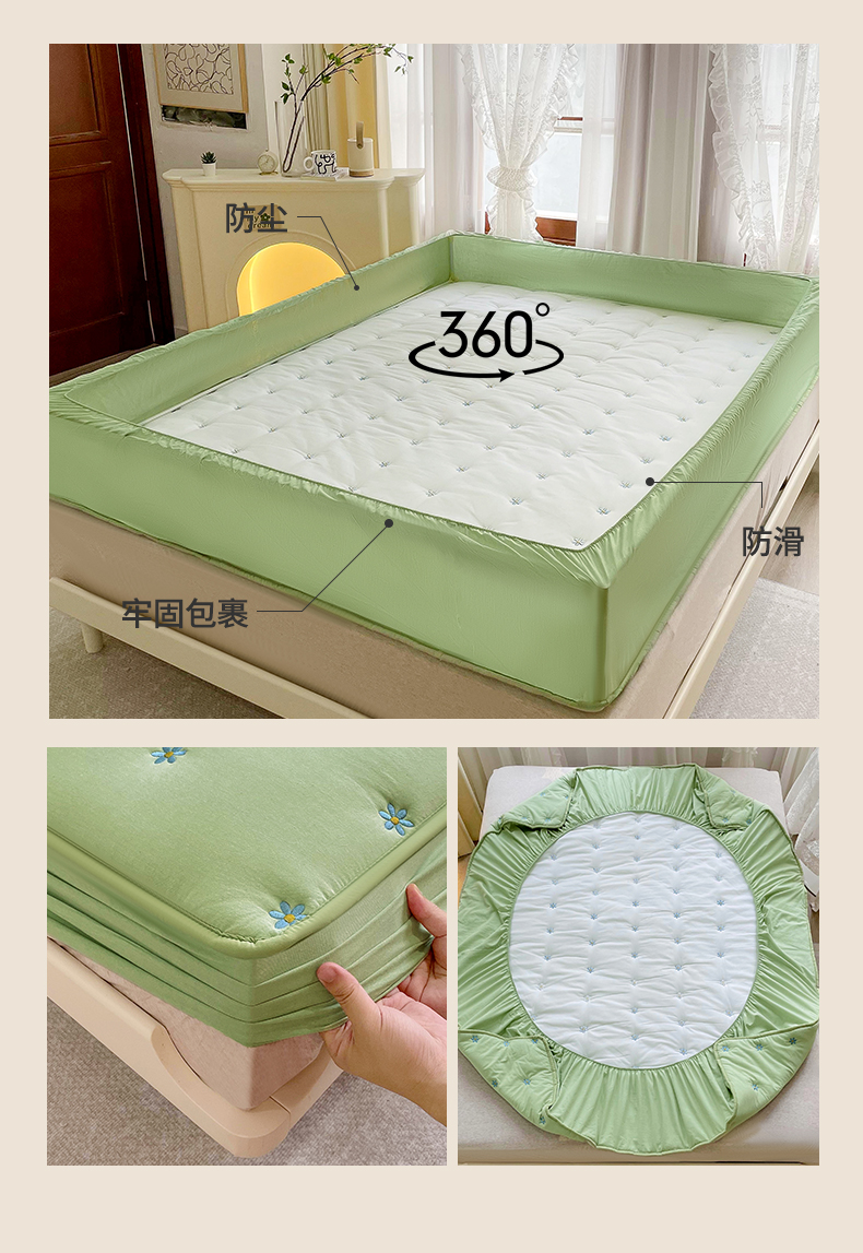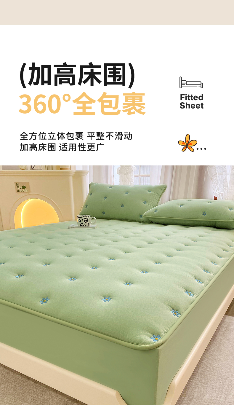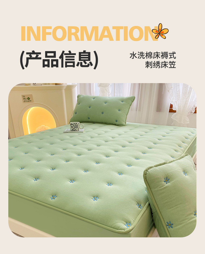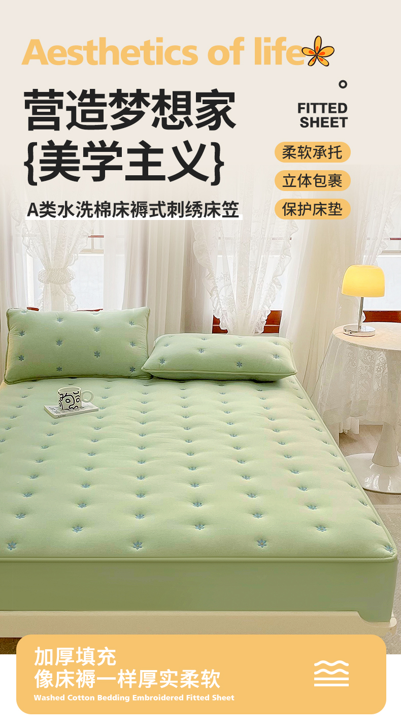 商品名称:予梦家纺 2024新款水洗棉夹棉刺绣床笠 乐芙兰-豆绿