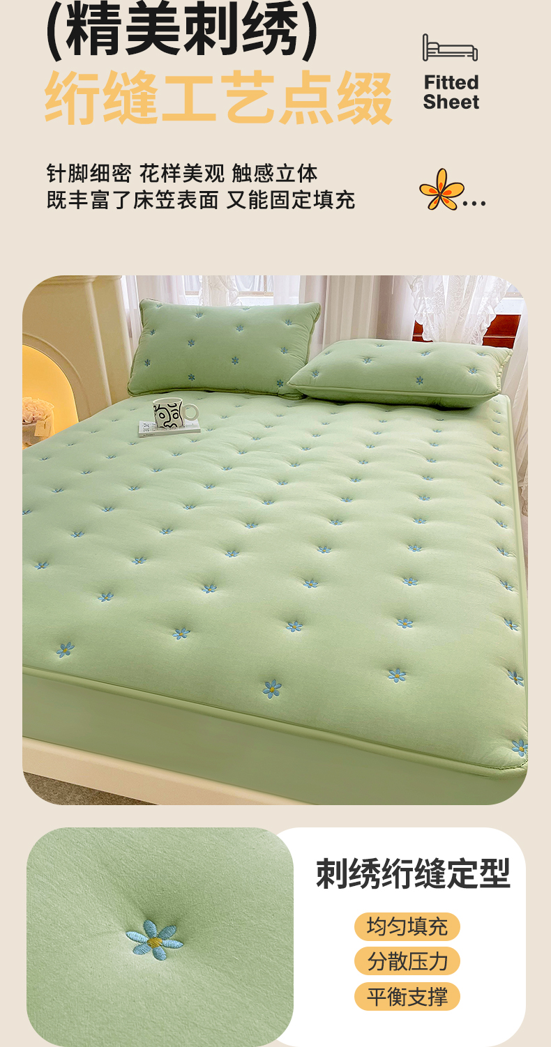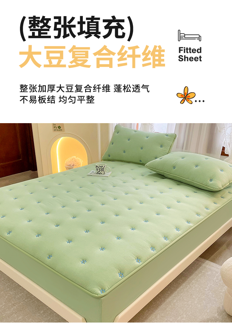 (总)予梦家纺 2024新款点绣款大豆夹棉床护垫床垫-阿卡丽,阿卡丽-雪白,阿卡丽-草绿,阿卡丽-卡其,阿卡丽-浅灰,阿卡丽-深玉,阿卡丽-天蓝
