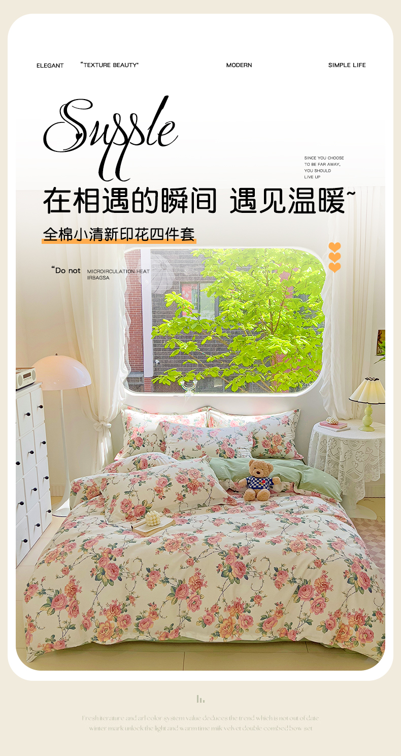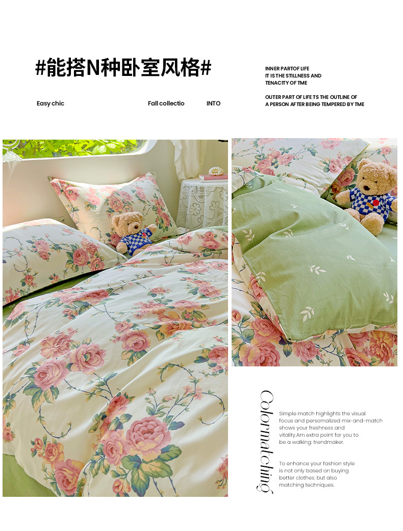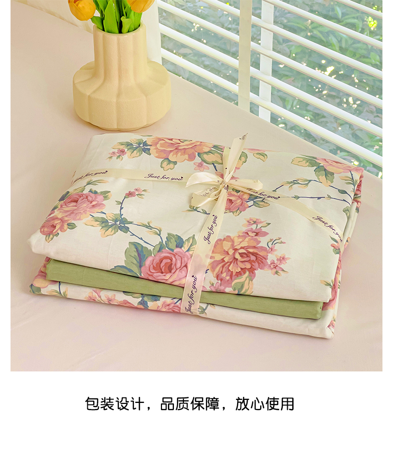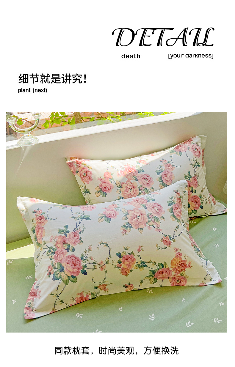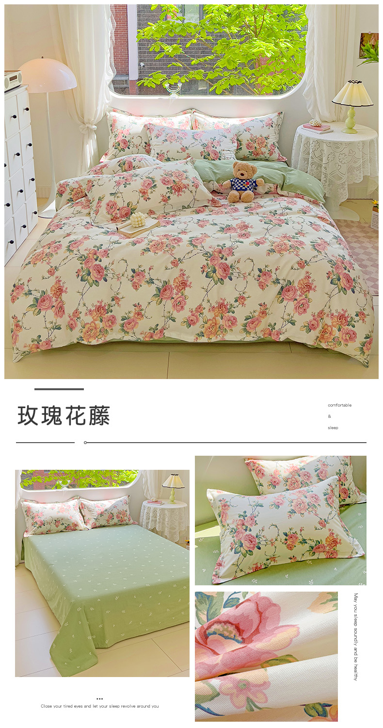 商品名称:优选良品 2025新款直播爆款全棉-ins印花系列四件套纯棉三件套床单床笠 玫瑰花藤