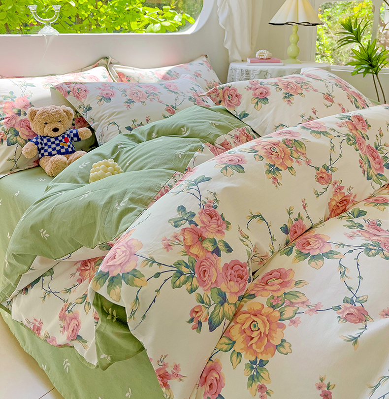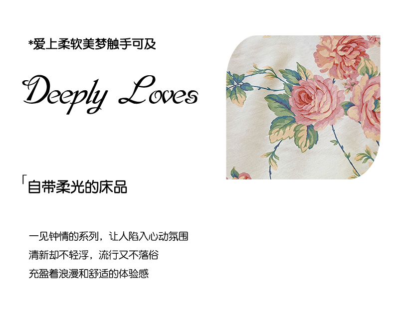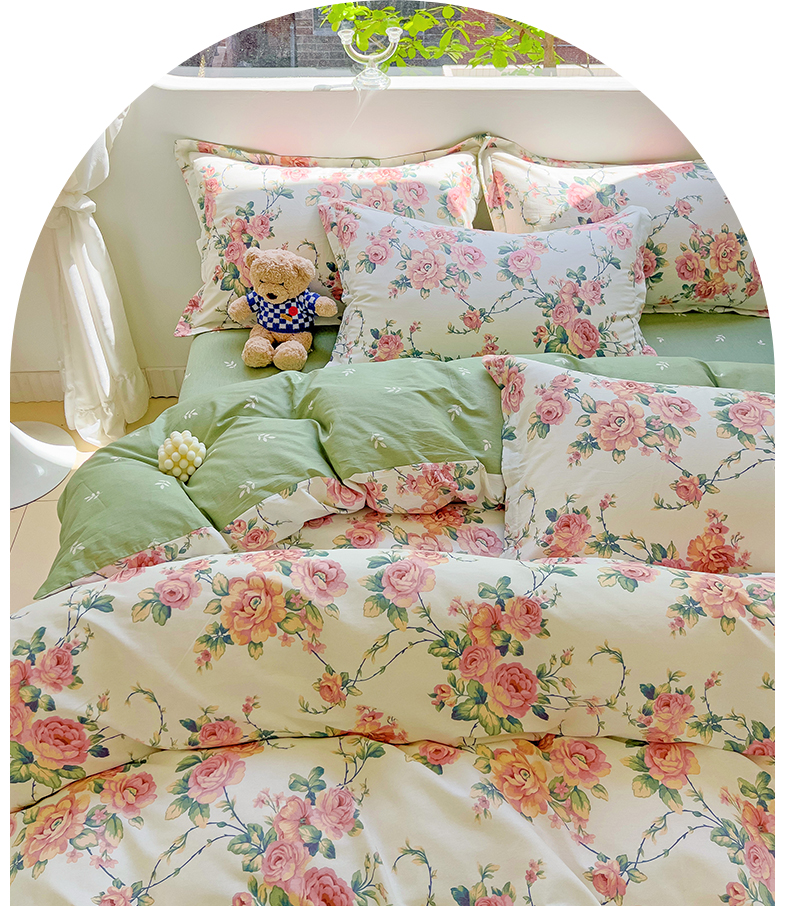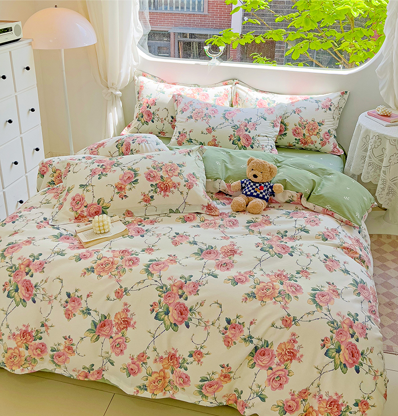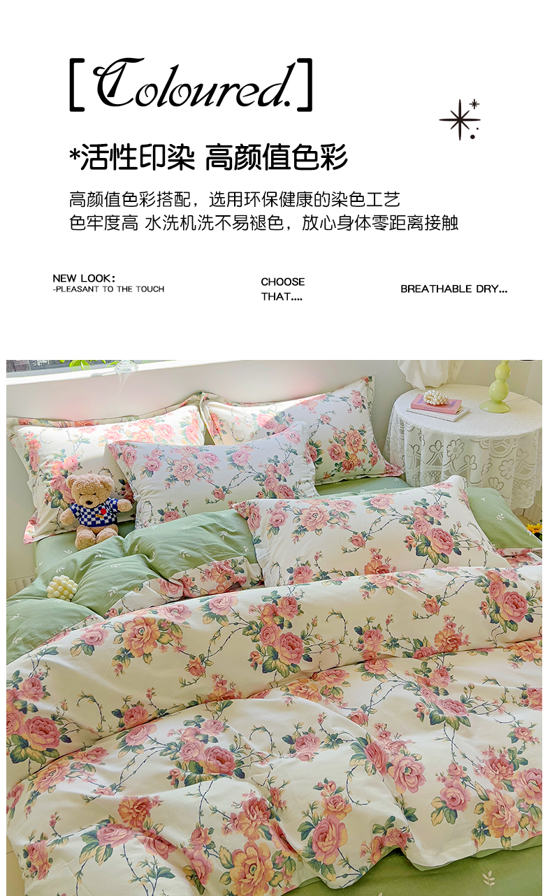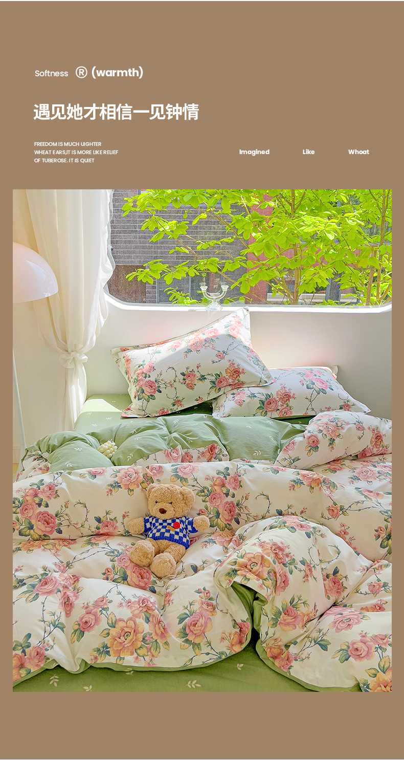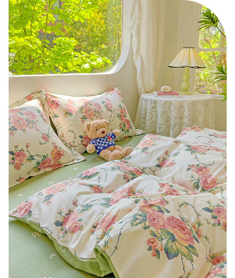 商品名称:优选良品 2025新款直播爆款全棉-ins印花系列四件套纯棉三件套床单床笠 玫瑰花藤