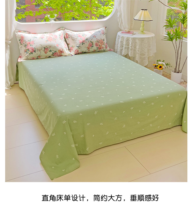 优选良品 2025新款韩版轻奢皱皱纱水洗棉拼色床单床笠四件套三件套-抹茶绿,抹茶绿