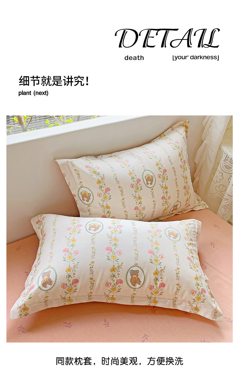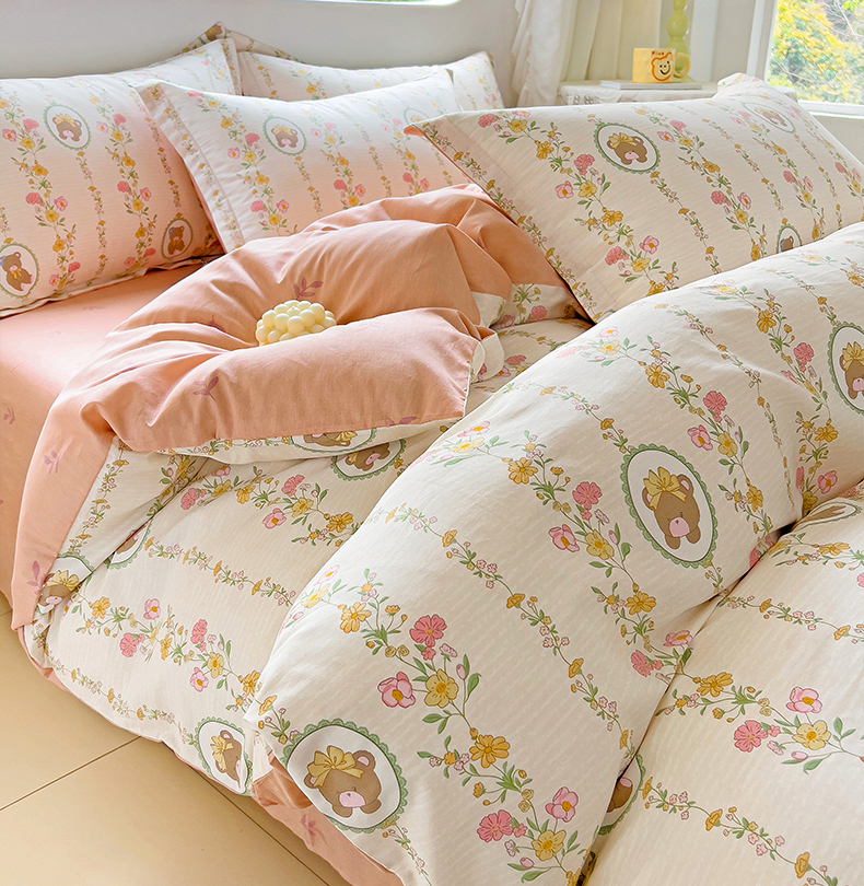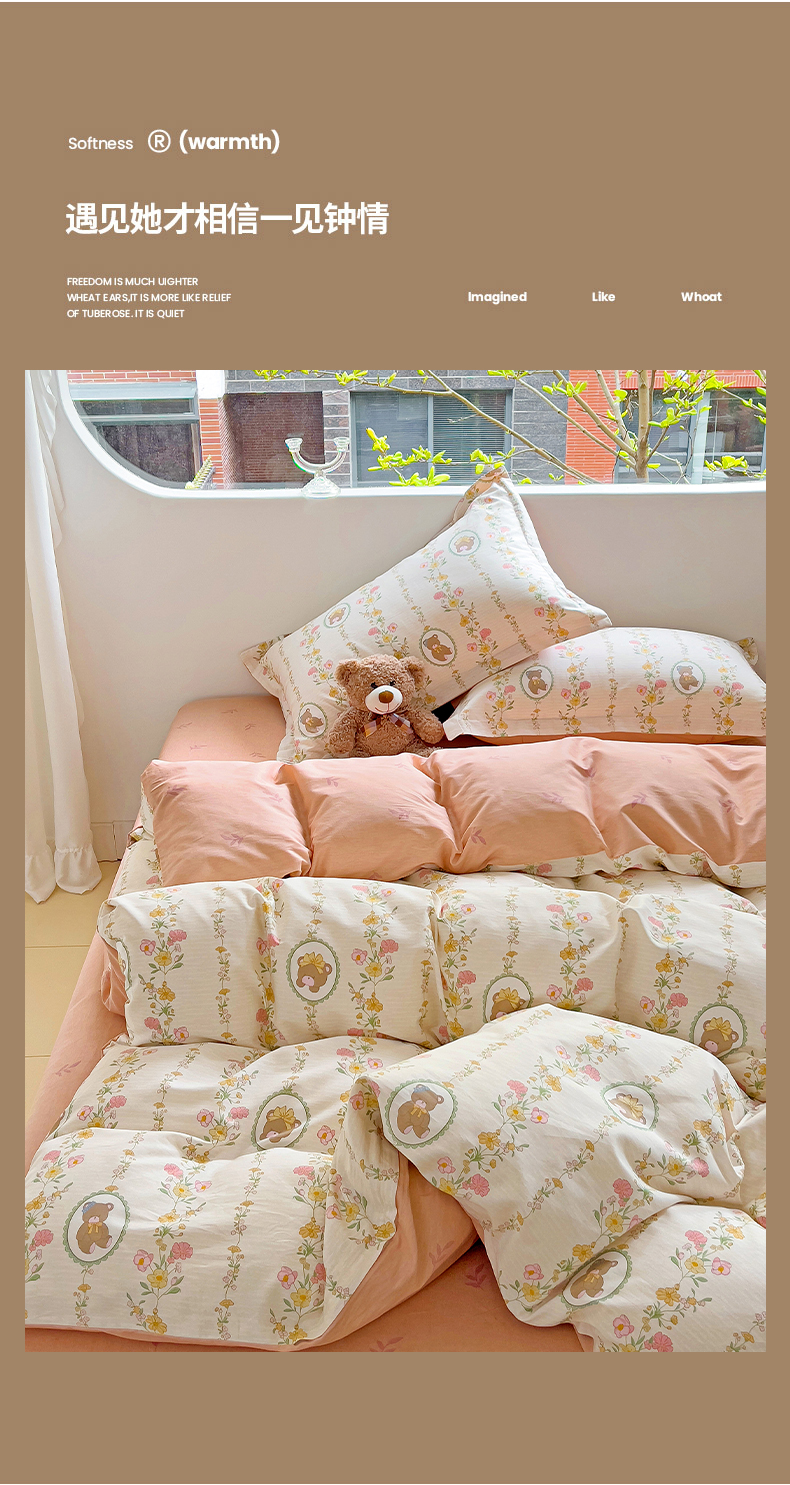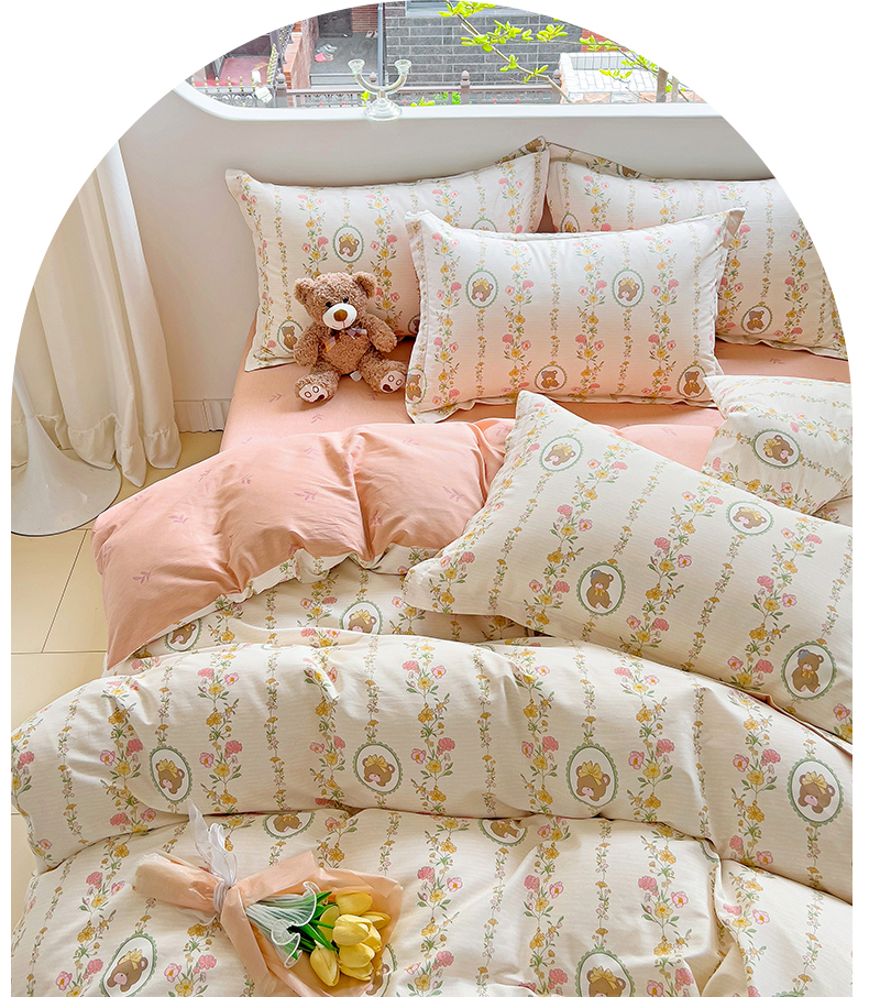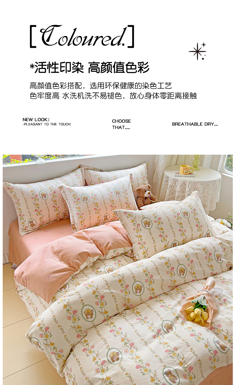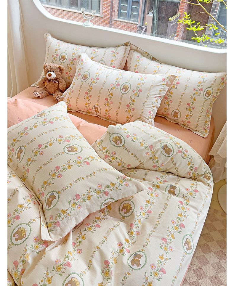 商品名称:优选良品 2025新款直播爆款全棉-ins印花系列四件套纯棉三件套床单床笠 菲乐熊宝