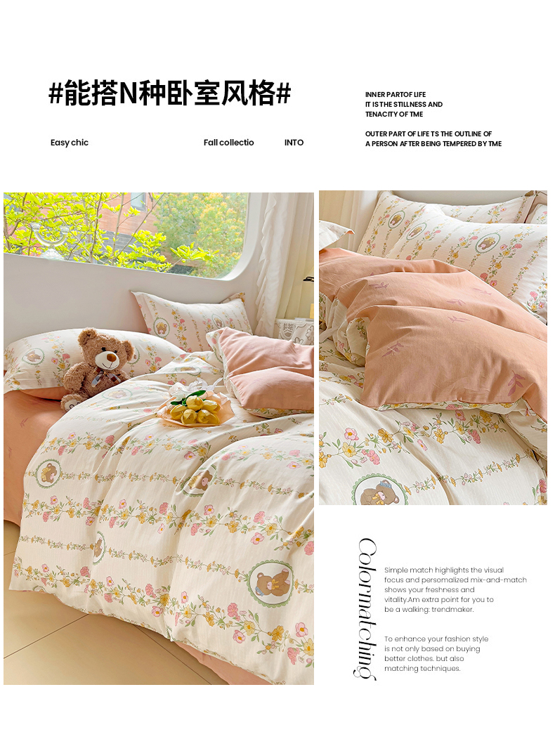 优选良品 2025新款直播爆款全棉-ins印花系列四件套纯棉三件套床单床笠 菲乐熊宝