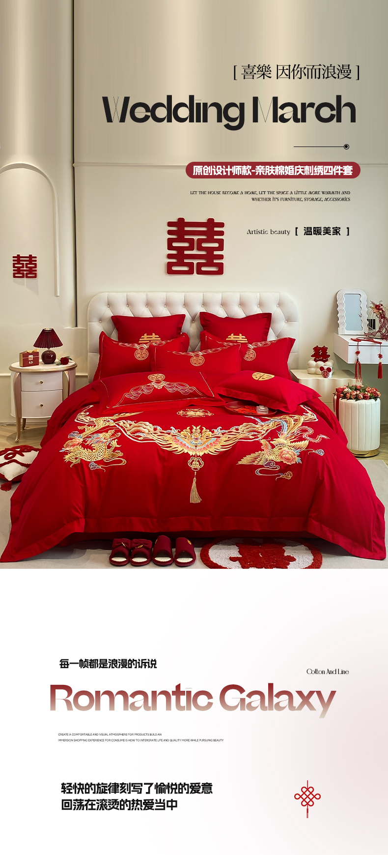 (总)欧乐蒂 2025新款设计师原创亲肤棉婚庆四件套,云喜东方,双喜临门,喜乐,喜事连连,爱恋,玫瑰爱恋,花开富贵,金枝玉叶,锦绣佳缘,龙姿风采