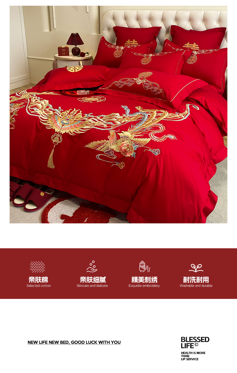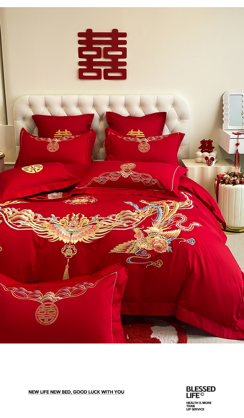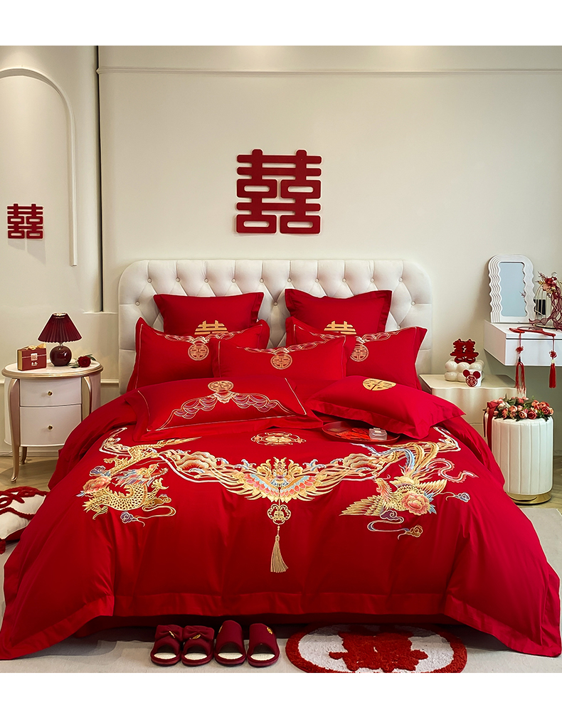 商品名称:欧乐蒂 2025新款亲肤棉婚庆刺绣四件套-终版 龙凤和鸣