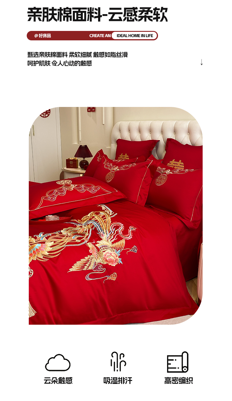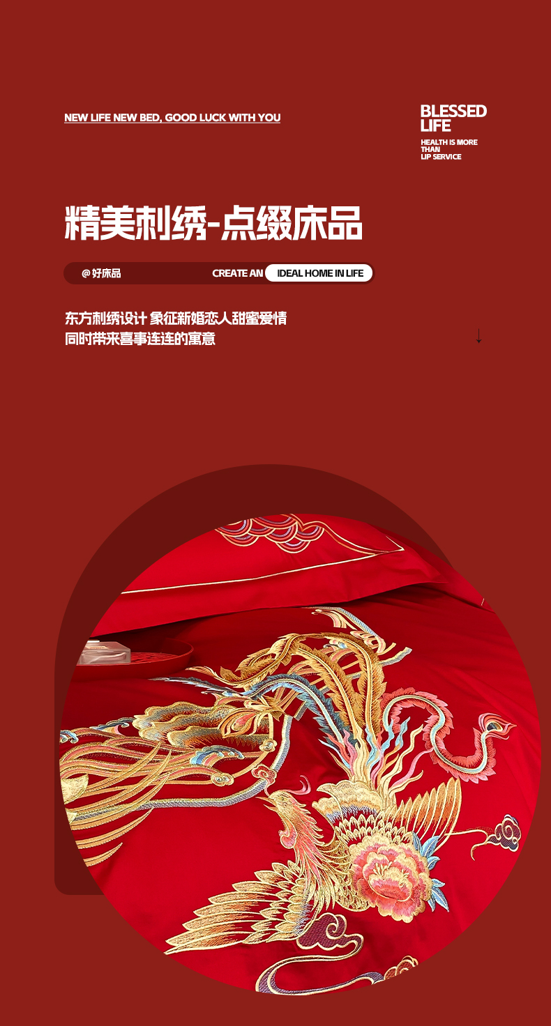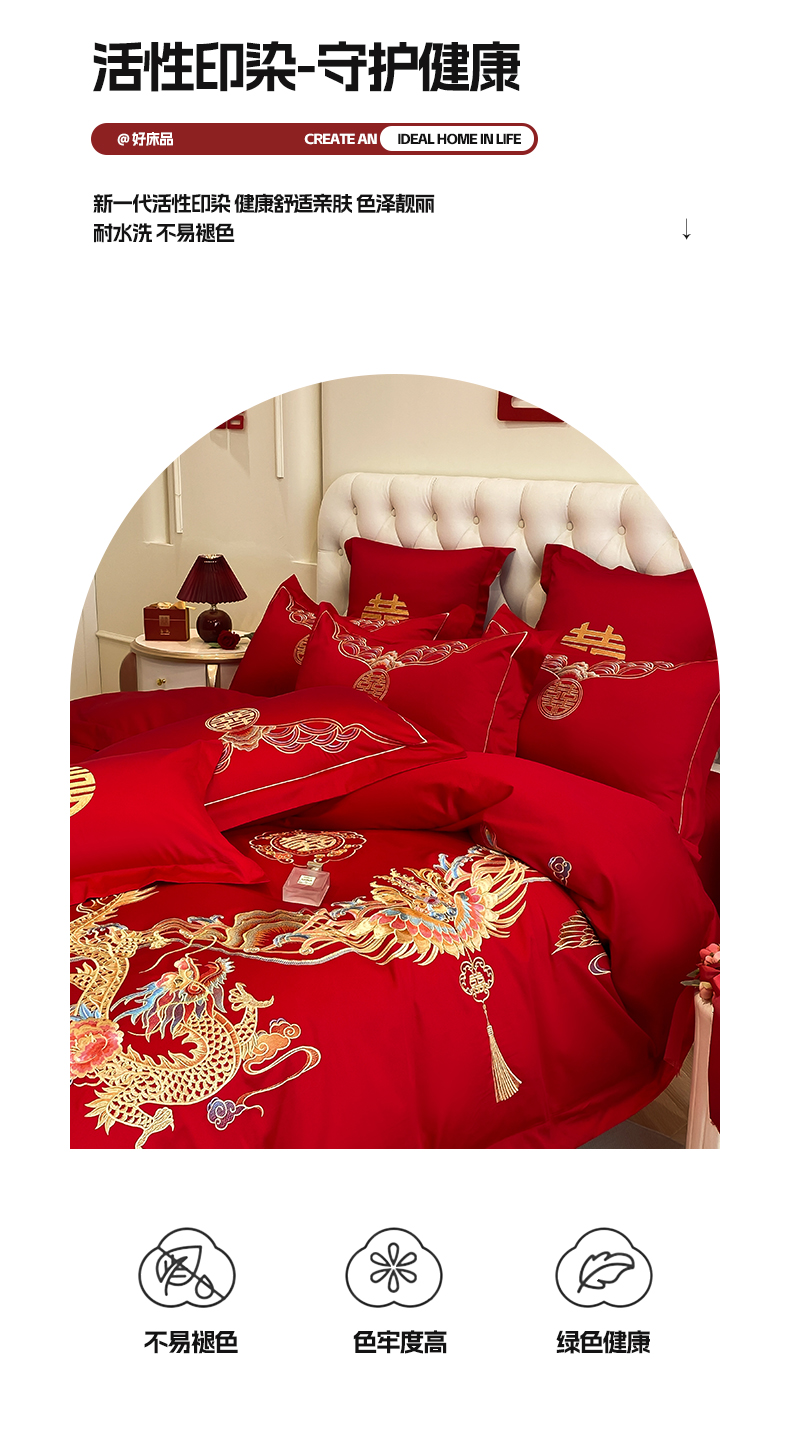 商品名称:欧乐蒂 2025新款亲肤棉婚庆刺绣四件套-终版 龙凤和鸣
