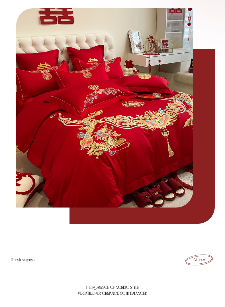 欧乐蒂 2025新款亲肤棉婚庆刺绣四件套-终版 龙凤和鸣