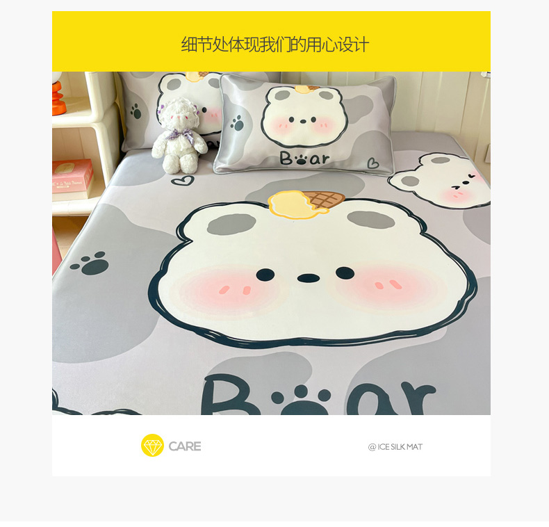 商品名称:柒月 2024新款大版印花碳光冰丝床笠 床笠-斑点熊灰