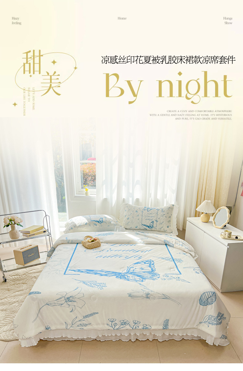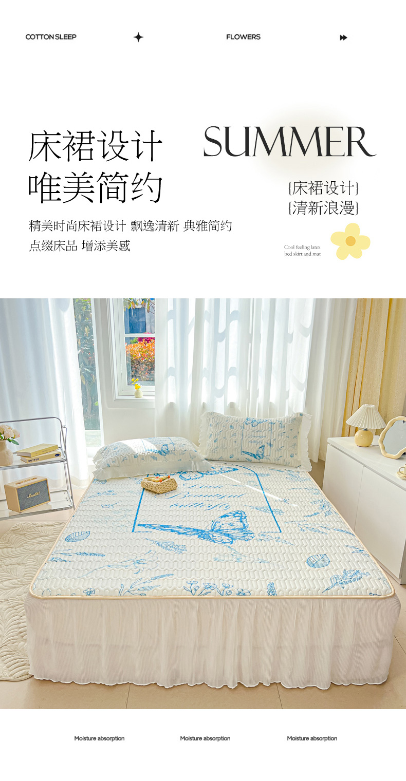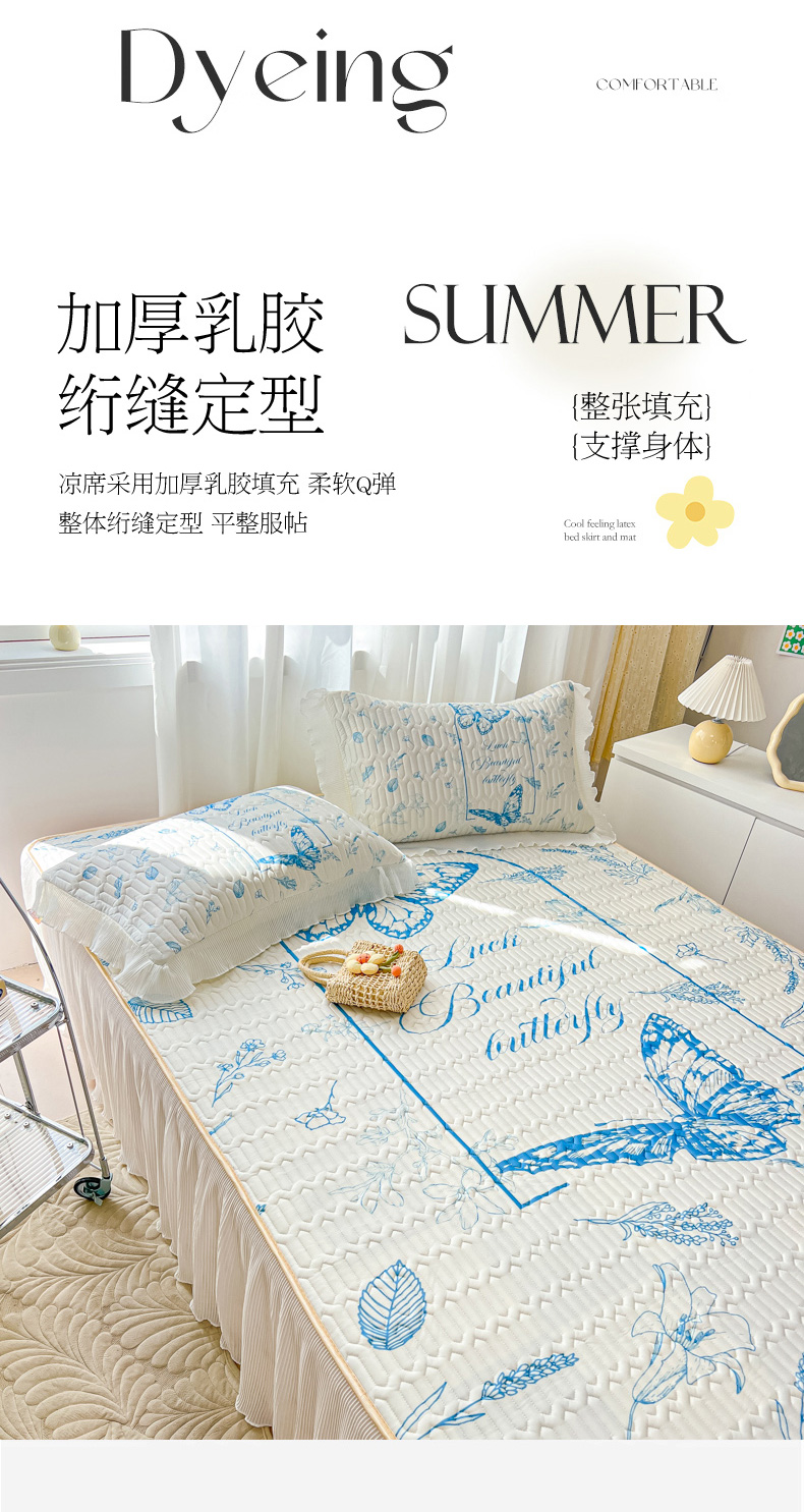 慕澄家纺 2024新款大版印花床裙款乳胶凉席-凉席三件套 蝴蝶飞飞
