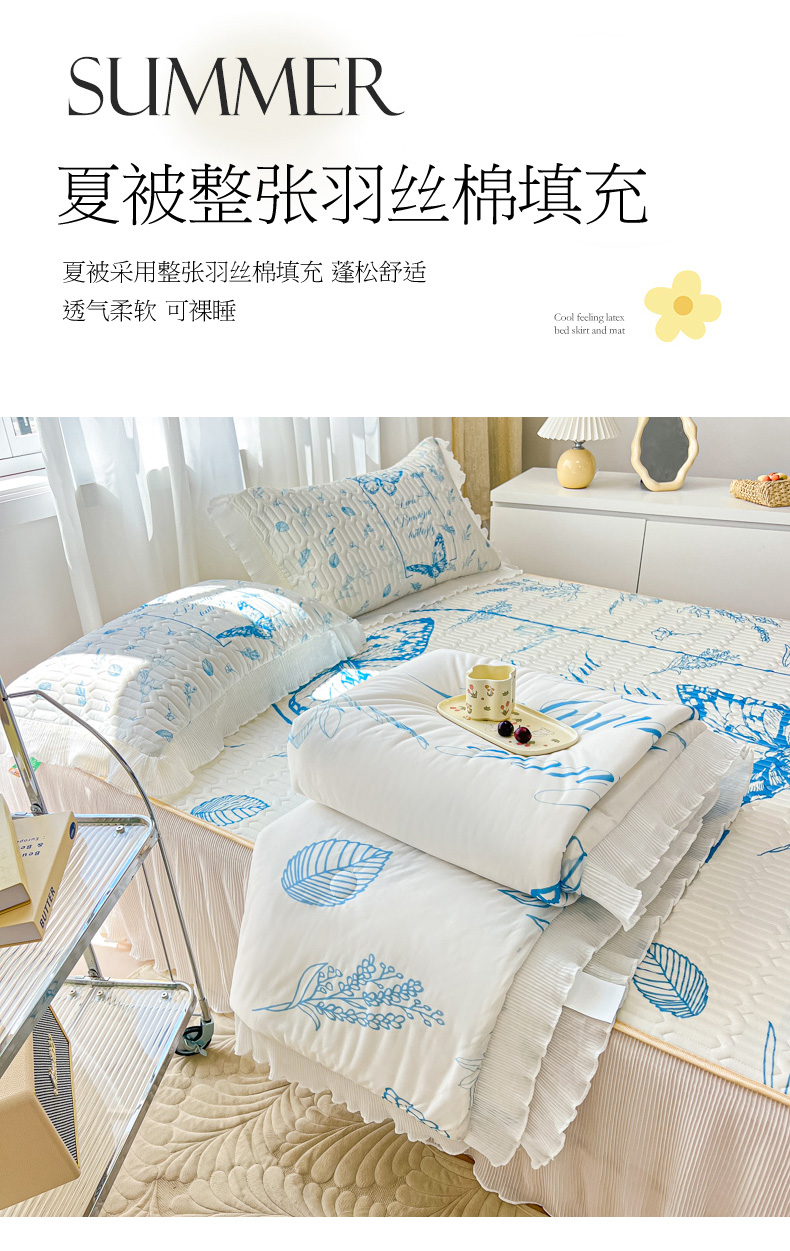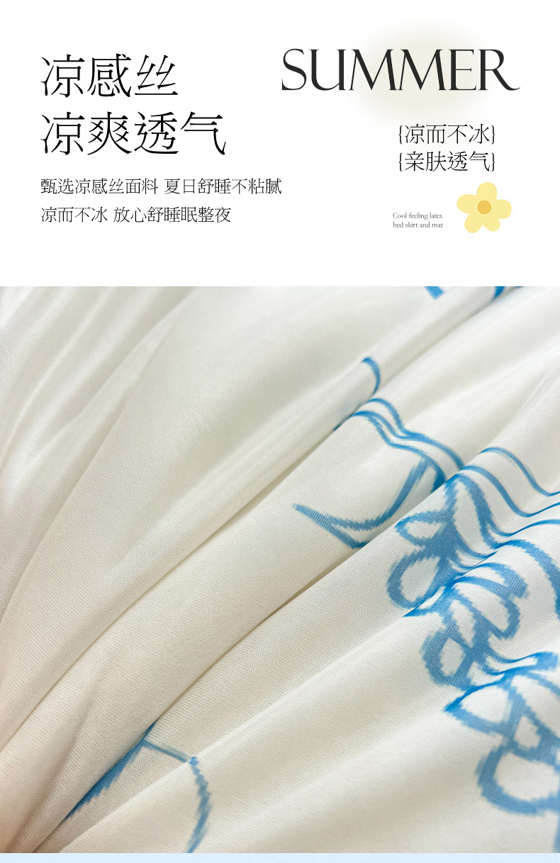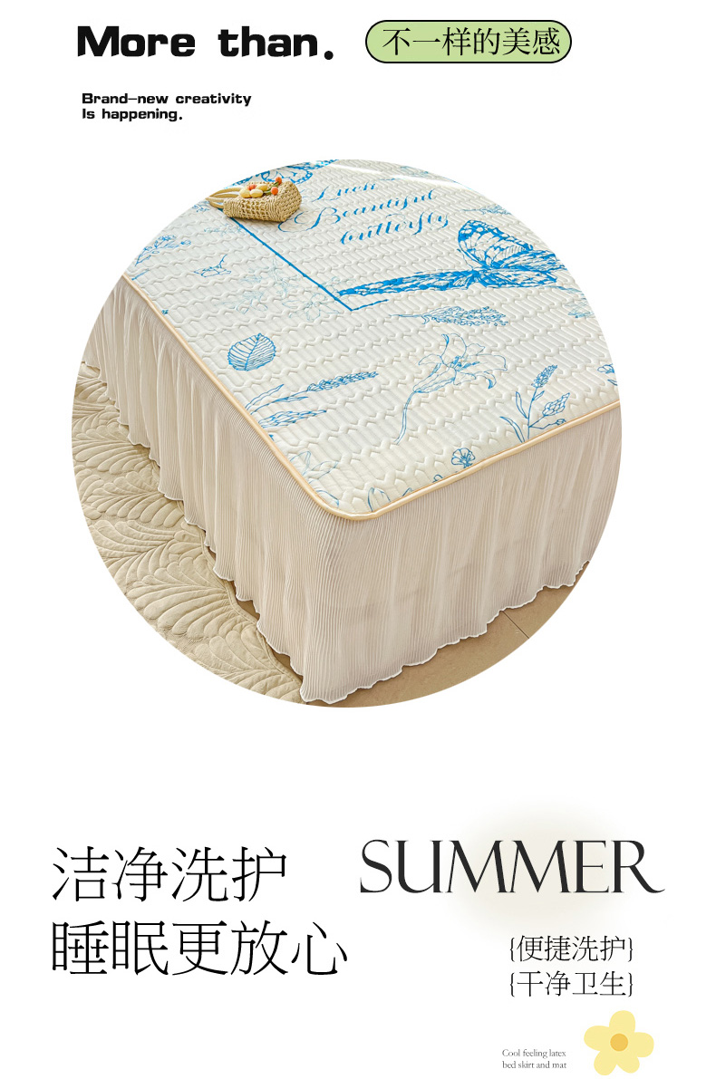 慕澄家纺 2024新款大版印花床裙款乳胶凉席-凉席三件套 蝴蝶飞飞