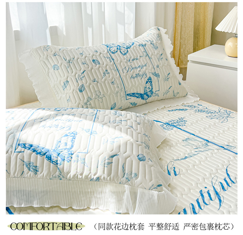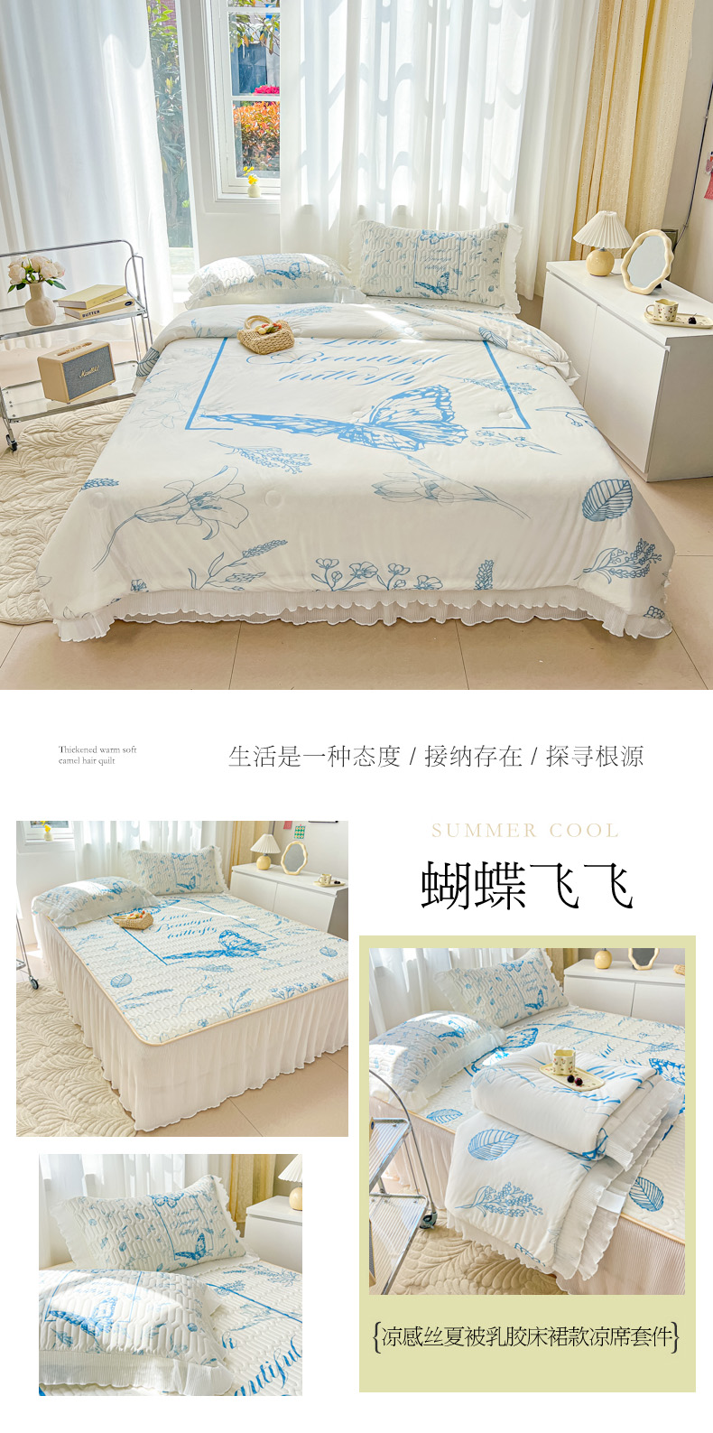 商品名称:慕澄家纺 2024新款大版印花床裙款乳胶凉席-凉席三件套 蝴蝶飞飞