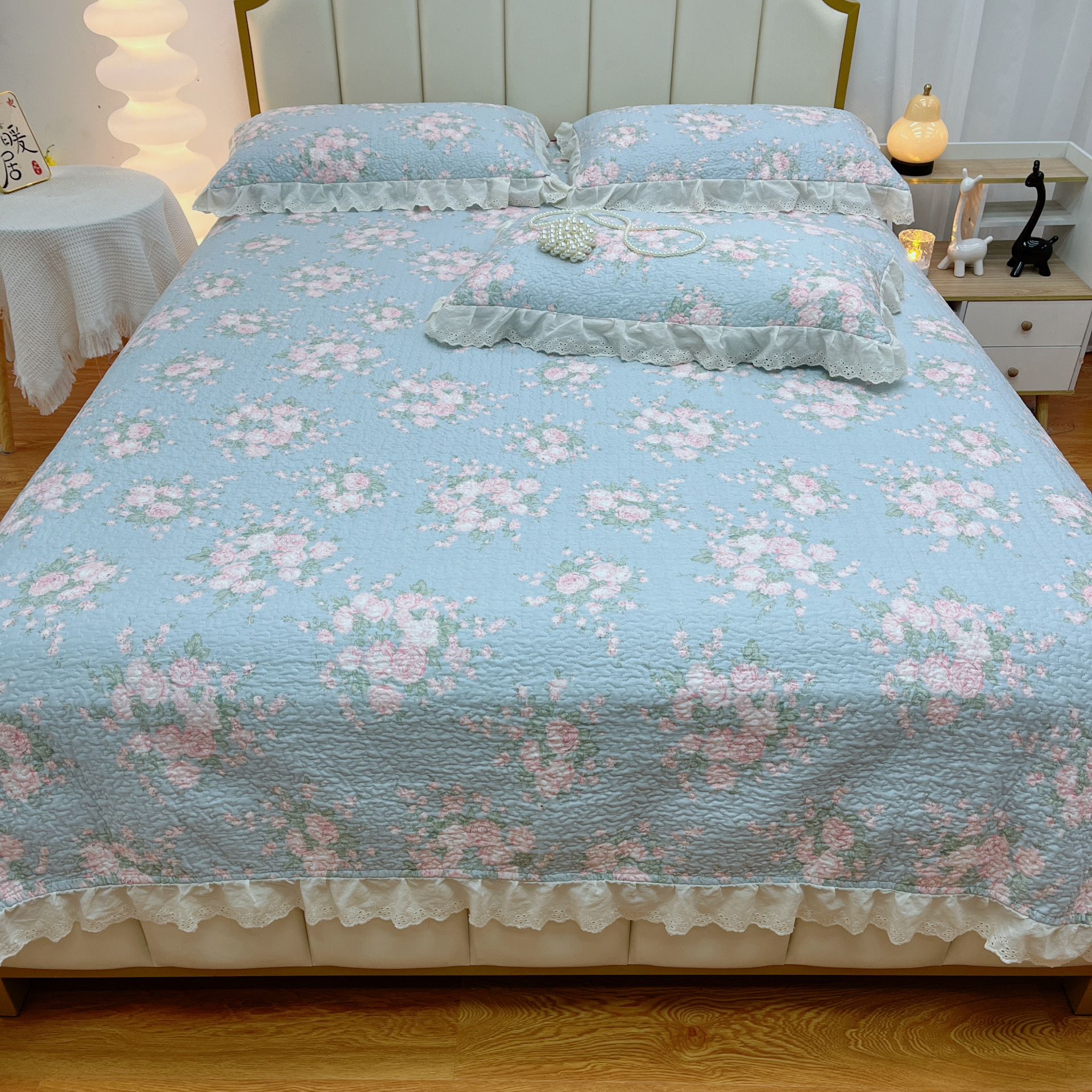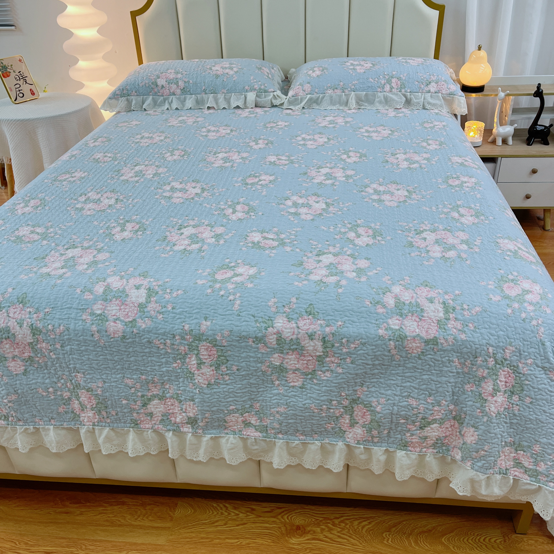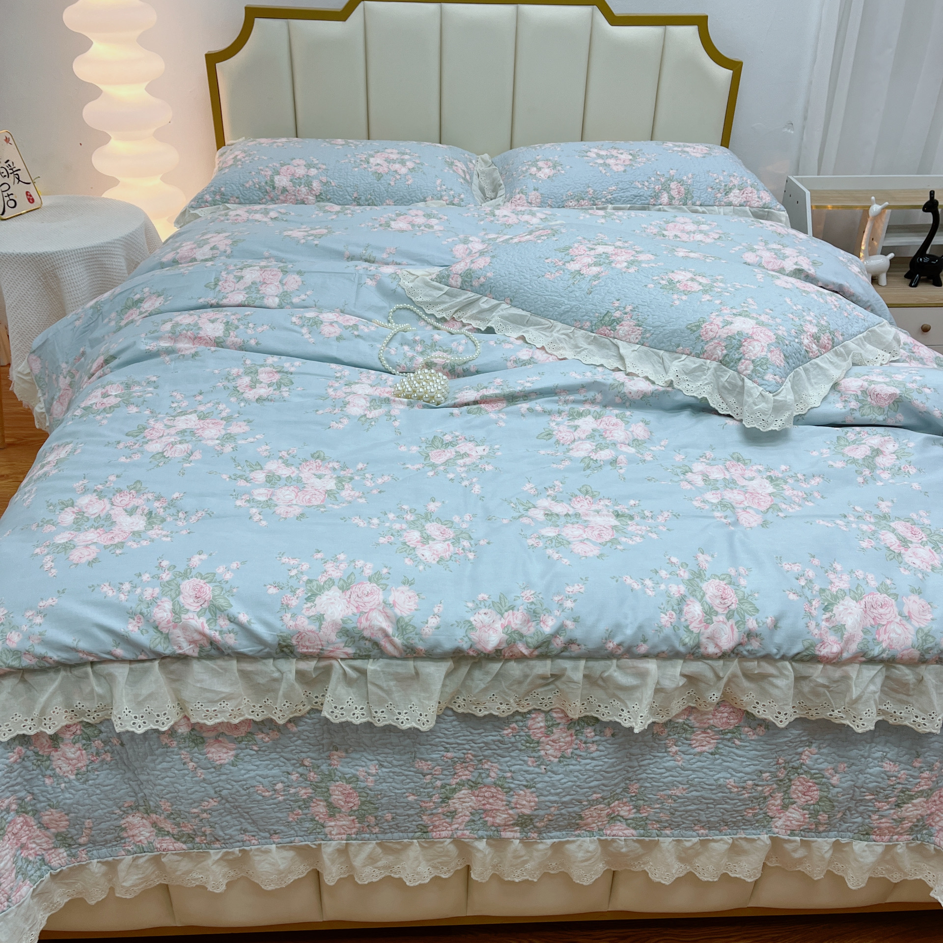 暖居 2024新款砂洗棉花被套全棉床盖四件套绗缝夹棉纯棉床盖三件套 苏里南