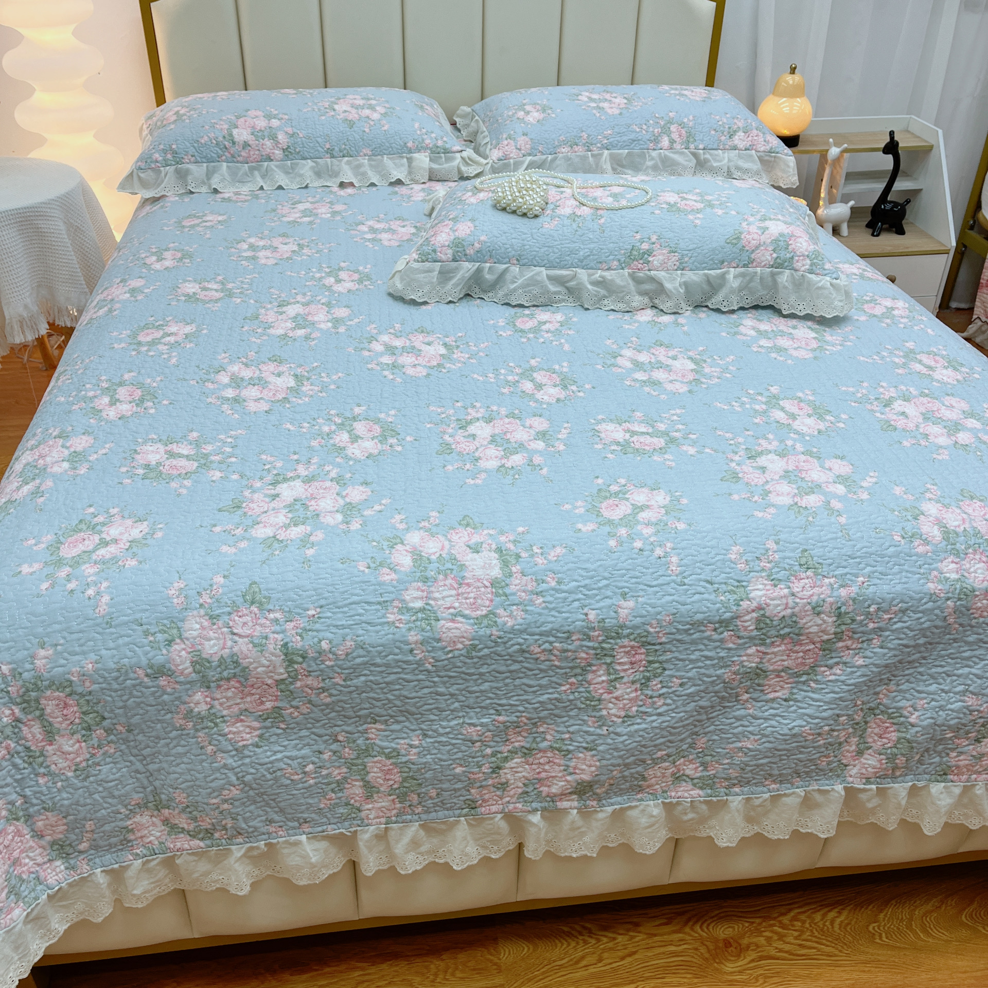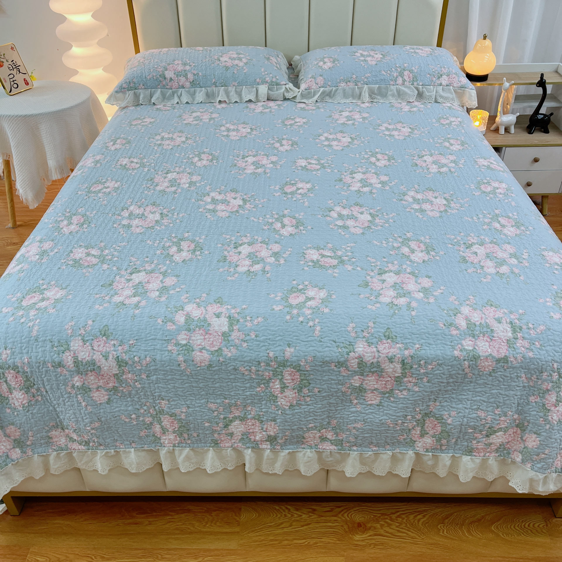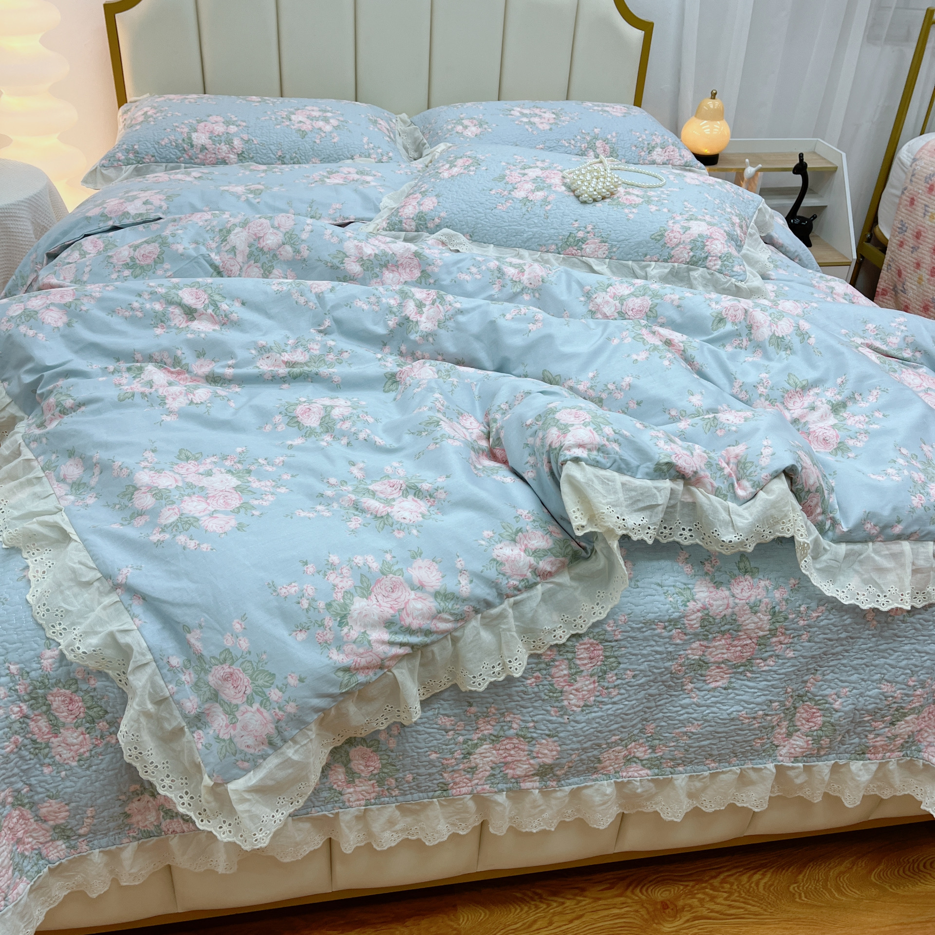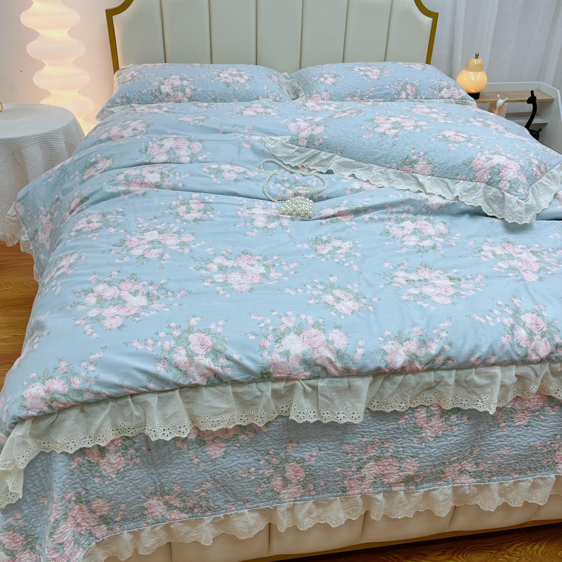 暖居 2024新款砂洗棉花被套全棉床盖四件套绗缝夹棉纯棉床盖三件套 苏里南
