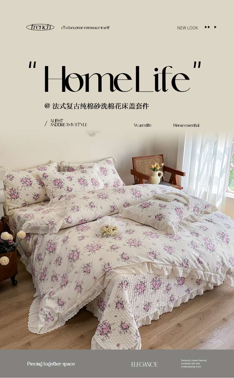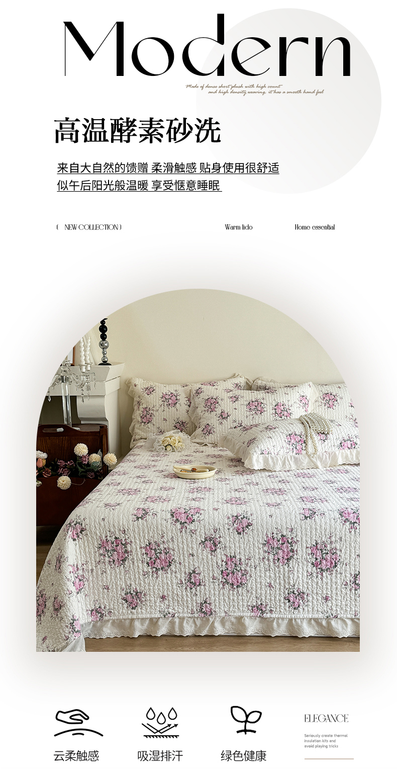 商品名称:添越 2024新款纯棉砂洗床盖 微甜-粉