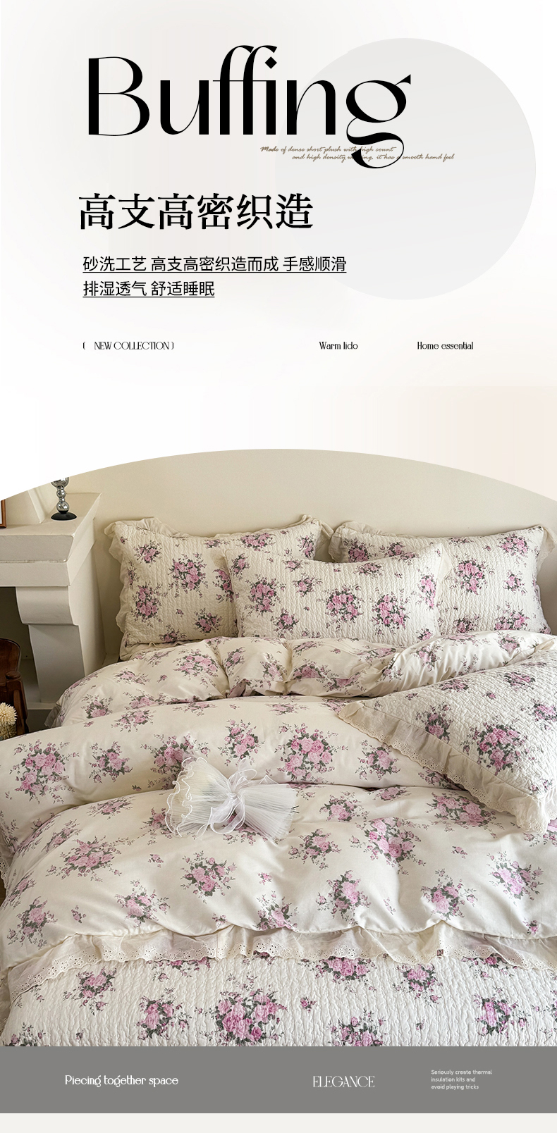 添越 2024新款纯棉砂洗床盖暗香玫瑰,暗香玫瑰