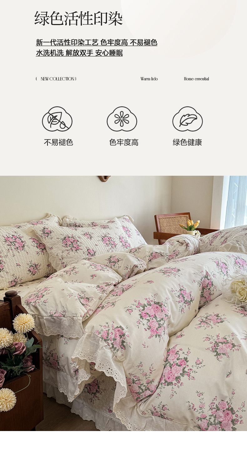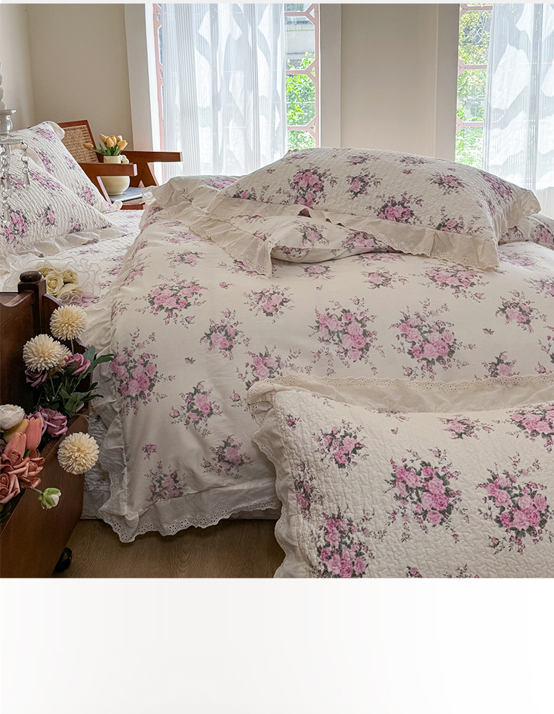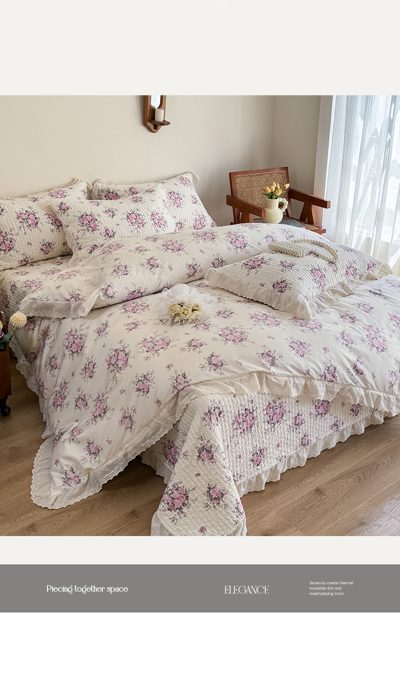 添越 2024小清新韩版蕾丝款花边纯棉夹棉床盖三件套全棉爱意时光蕾丝款,爱意时光蕾丝款