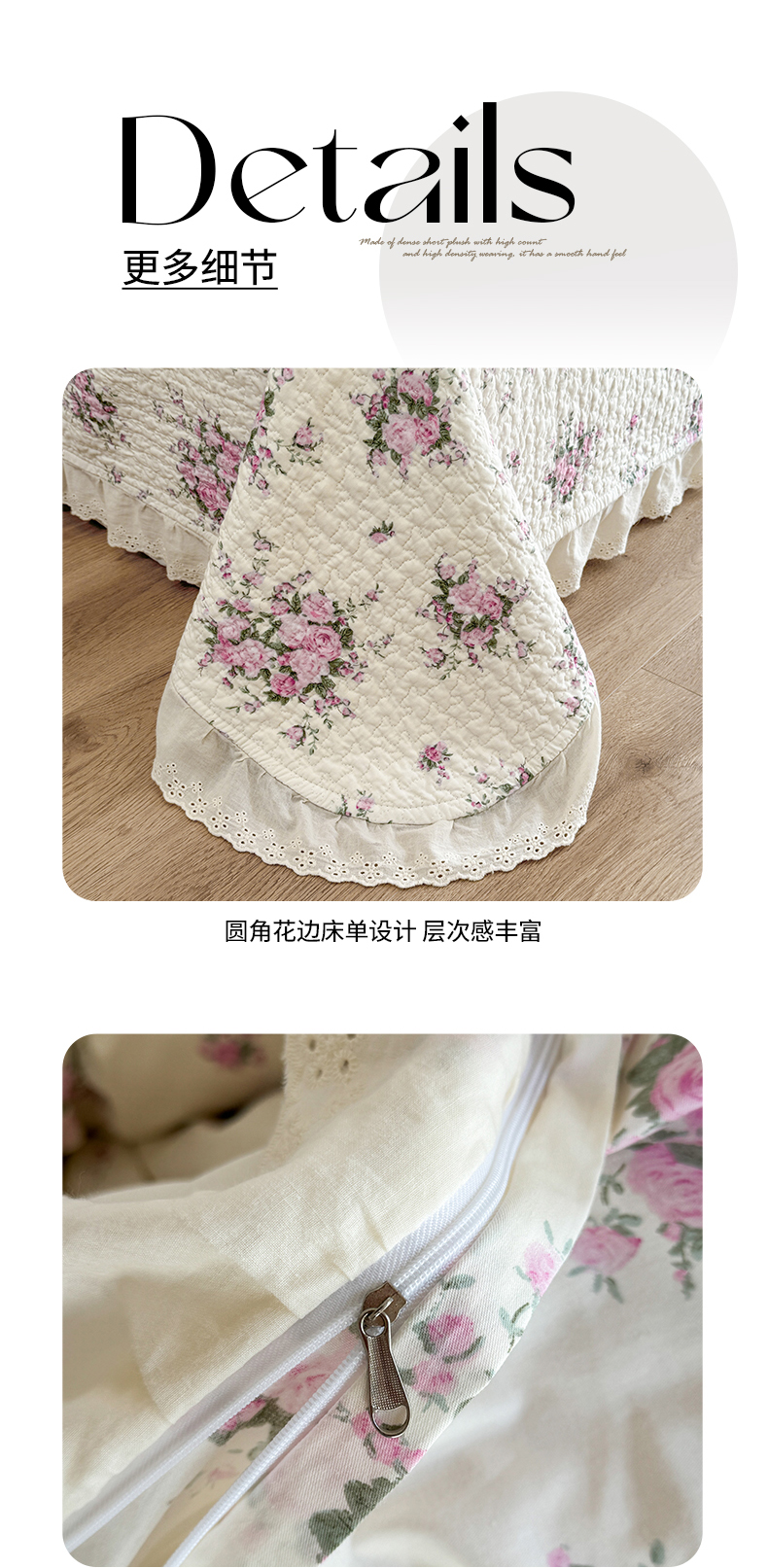 (总)添越 2024花边纯棉夹棉床盖三件套全棉,玫瑰花园粉,安娜花园,初恋,波点白,华美夺艳,黄波点,心动,梦境,多彩爱心,心心相印,太阳花米白,元气桃桃