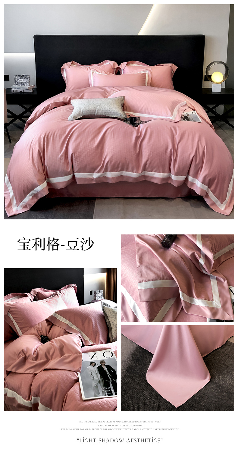 (总)2025新款小清新全棉纯棉四件套-若溪,麦田绿,茉莉奶白,霞光紫,杏花粉,雪山粉
