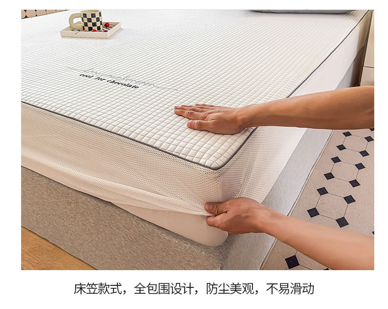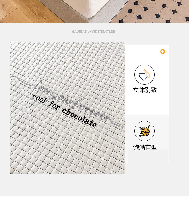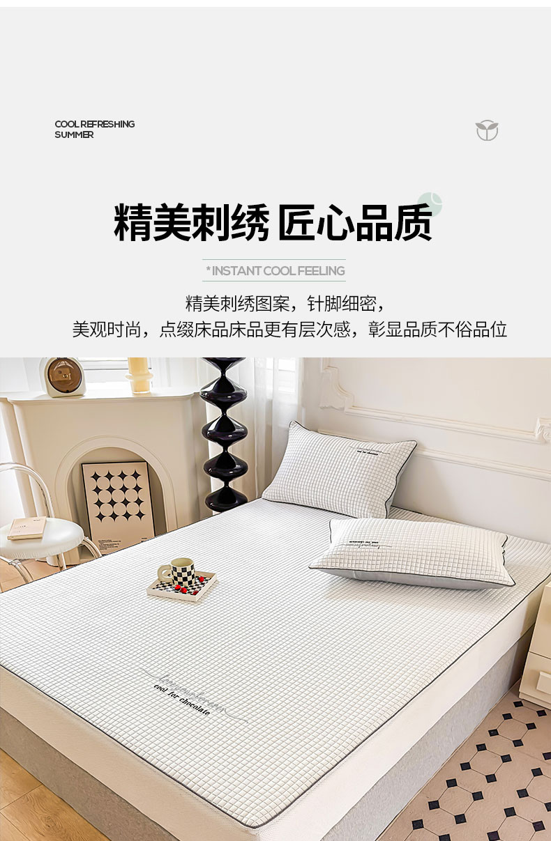 商品名称:(总)宅部落 2024新款巧克力块PE凉感绣花A类抗菌床笠款凉席