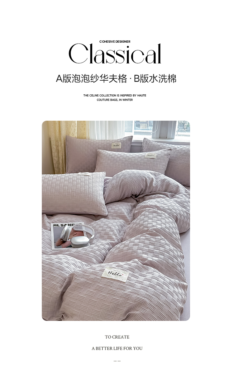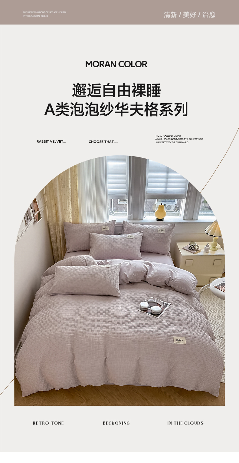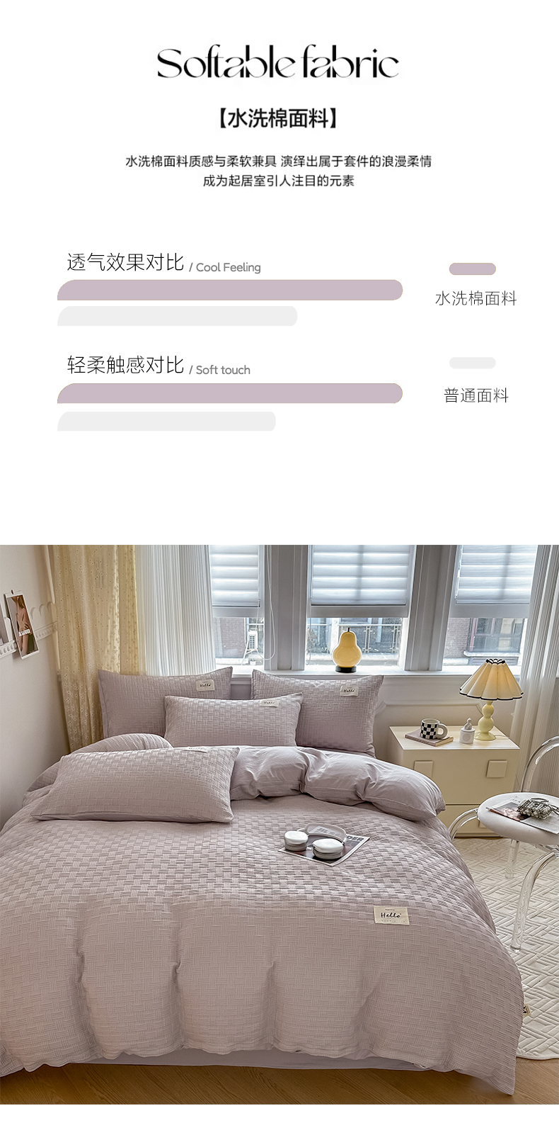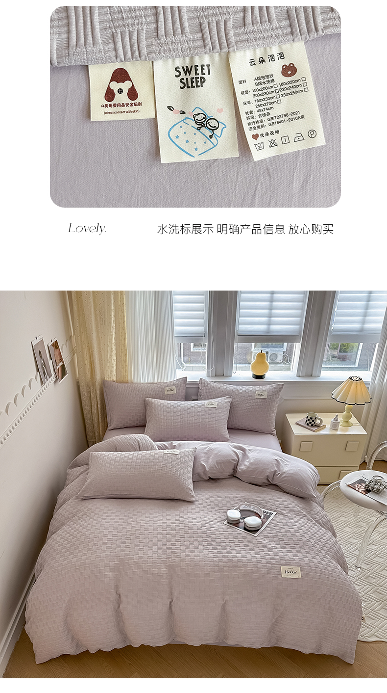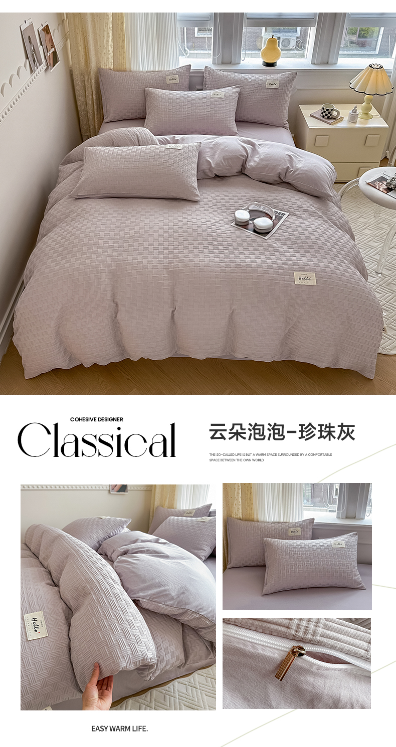 当前位置: 91家纺网 > 商品网购 > 床品套件 > 四件套 > 水洗棉四件套 > 沐辰 2024新款亲肤水洗棉云朵泡泡系列四件套 云朵泡泡-珍珠灰