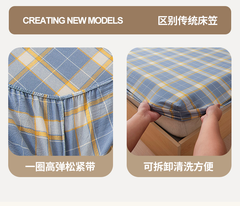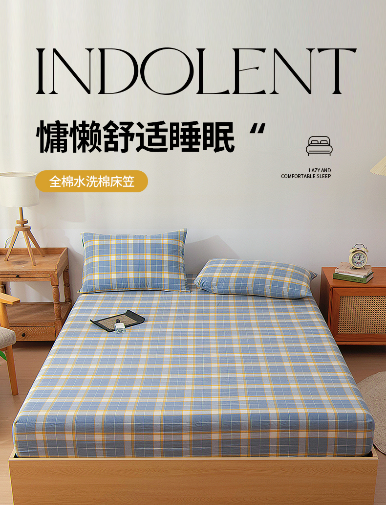 商品名称:鑫棉坊 2024新款全棉色织水洗棉床笠 雅致