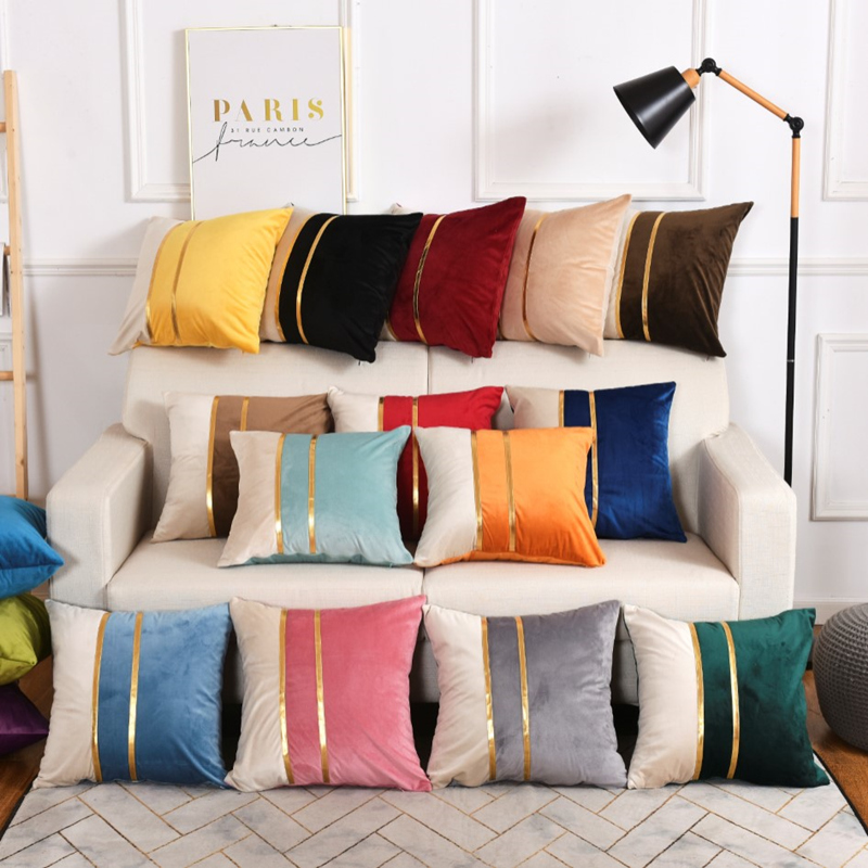 (总)爱家居 2025新款亚马逊跨境北欧轻奢抱枕套荷兰绒拼色靠垫靠垫天鹅绒沙发腰枕