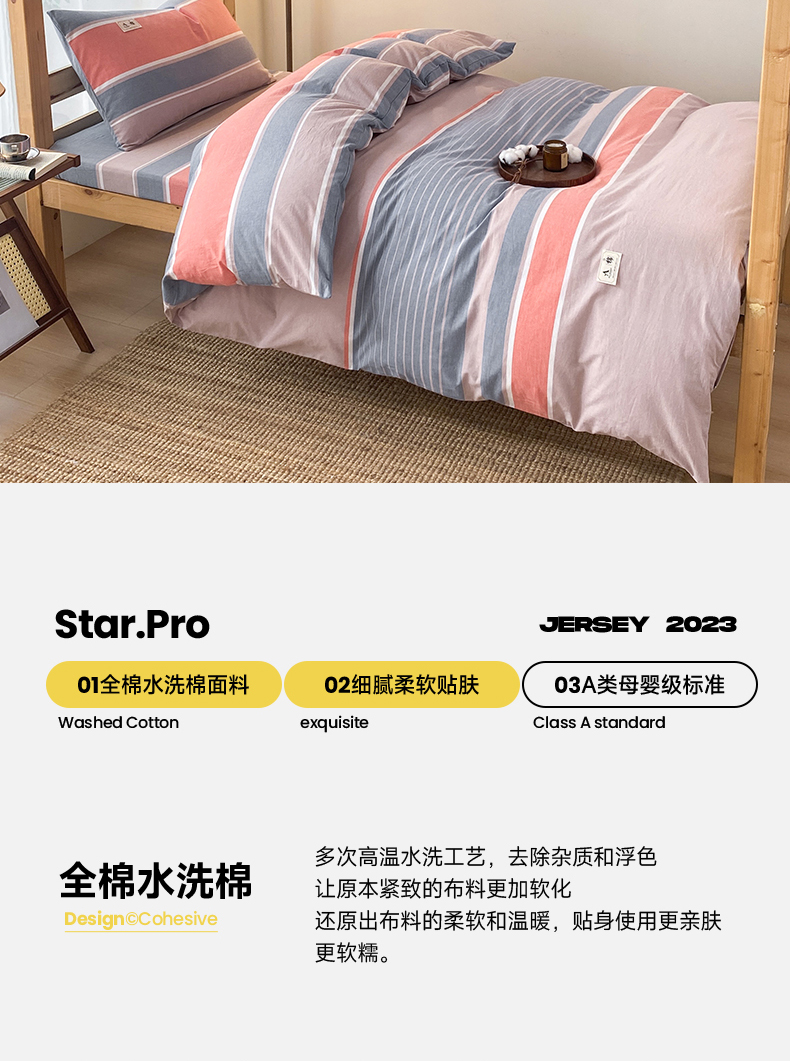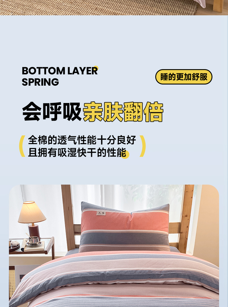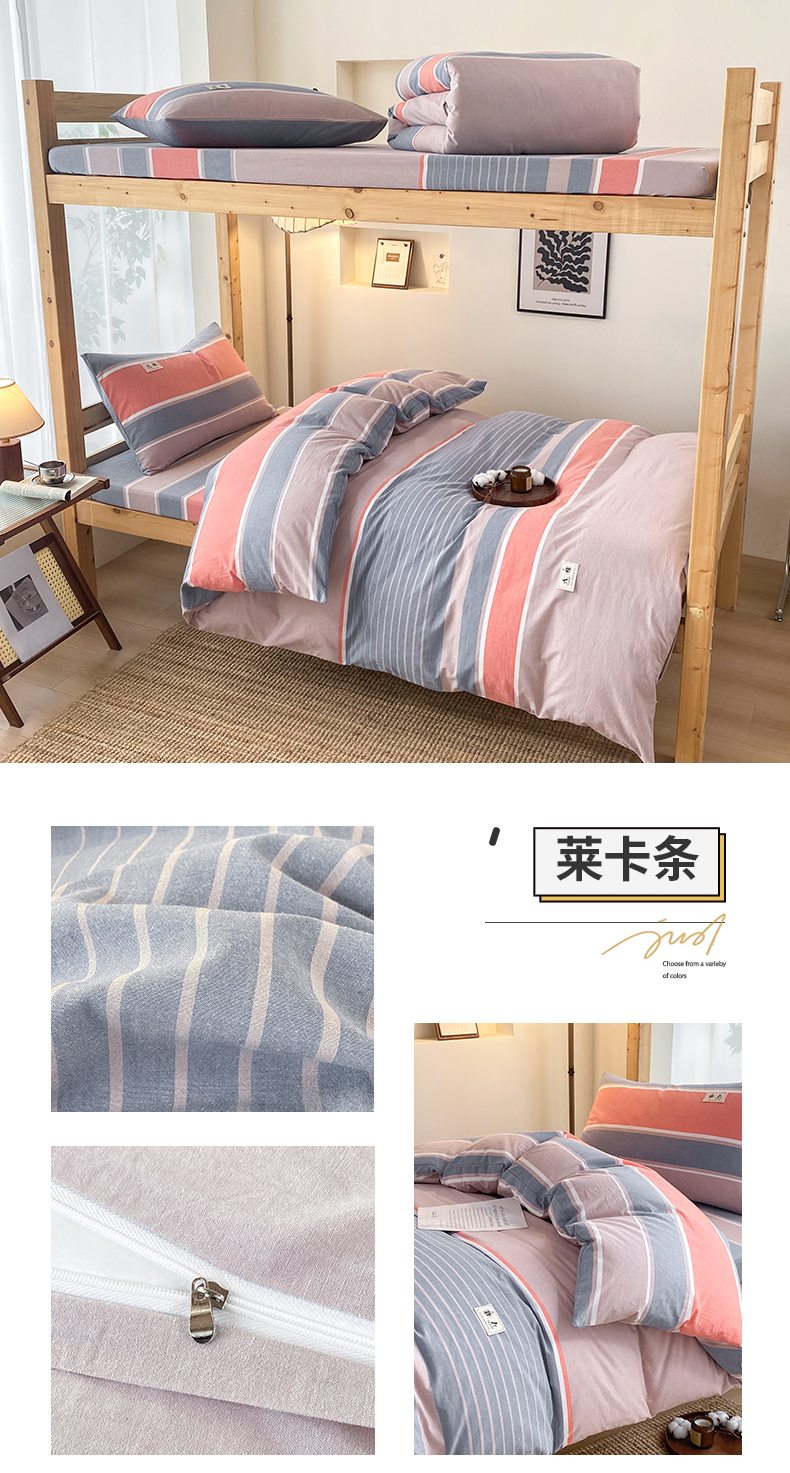 当前位置: 91家纺网 > 商品网购 > 床品套件 > 三件套 > 21度C 2024新款色织全棉水洗棉学生三件套 莱卡条