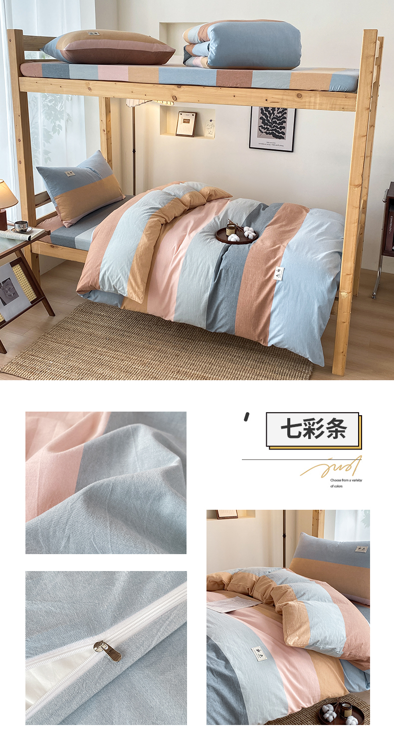 当前位置: 91家纺网 > 商品网购 > 床品套件 > 三件套 > 21度C 2024新款色织全棉水洗棉学生三件套 七彩条