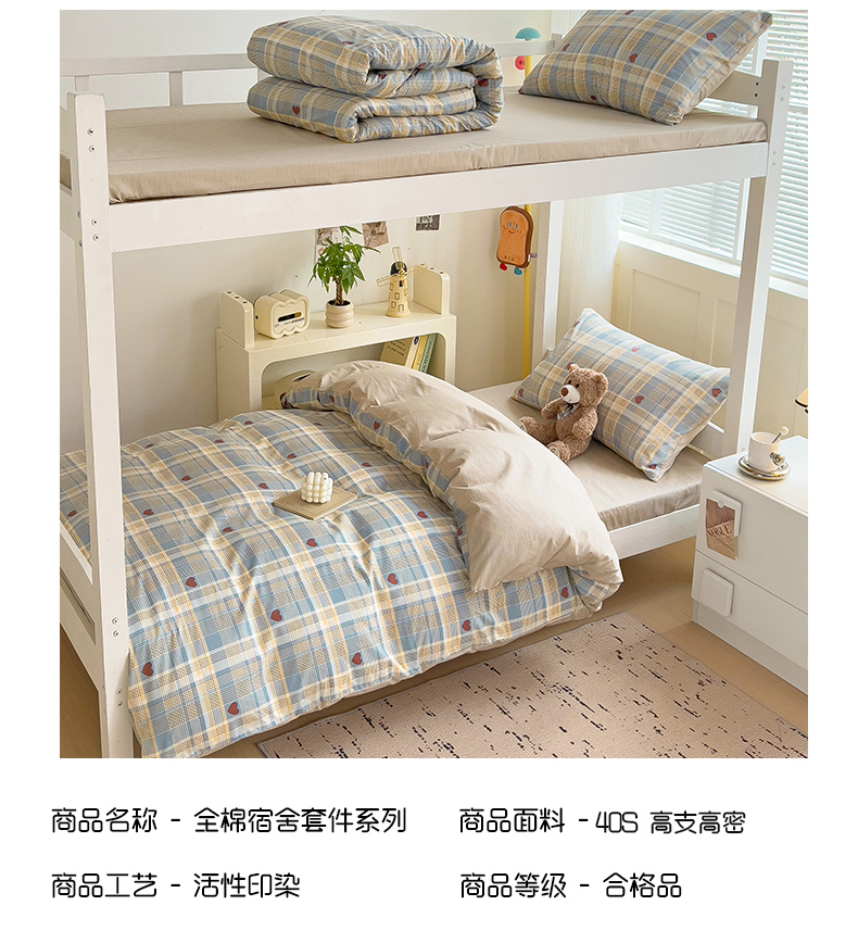 当前位置: 91家纺网 > 商品网购 > 床品套件 > 四件套 > 全棉普通四件套 > 麦伦家居 2024新款40支13372全棉斜纹学生上下铺床品系列 律动蓝