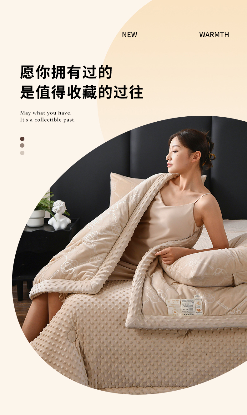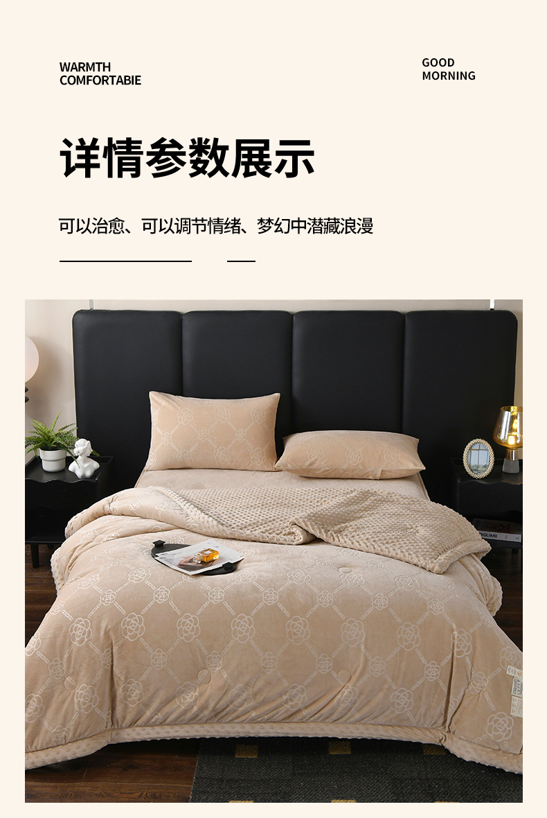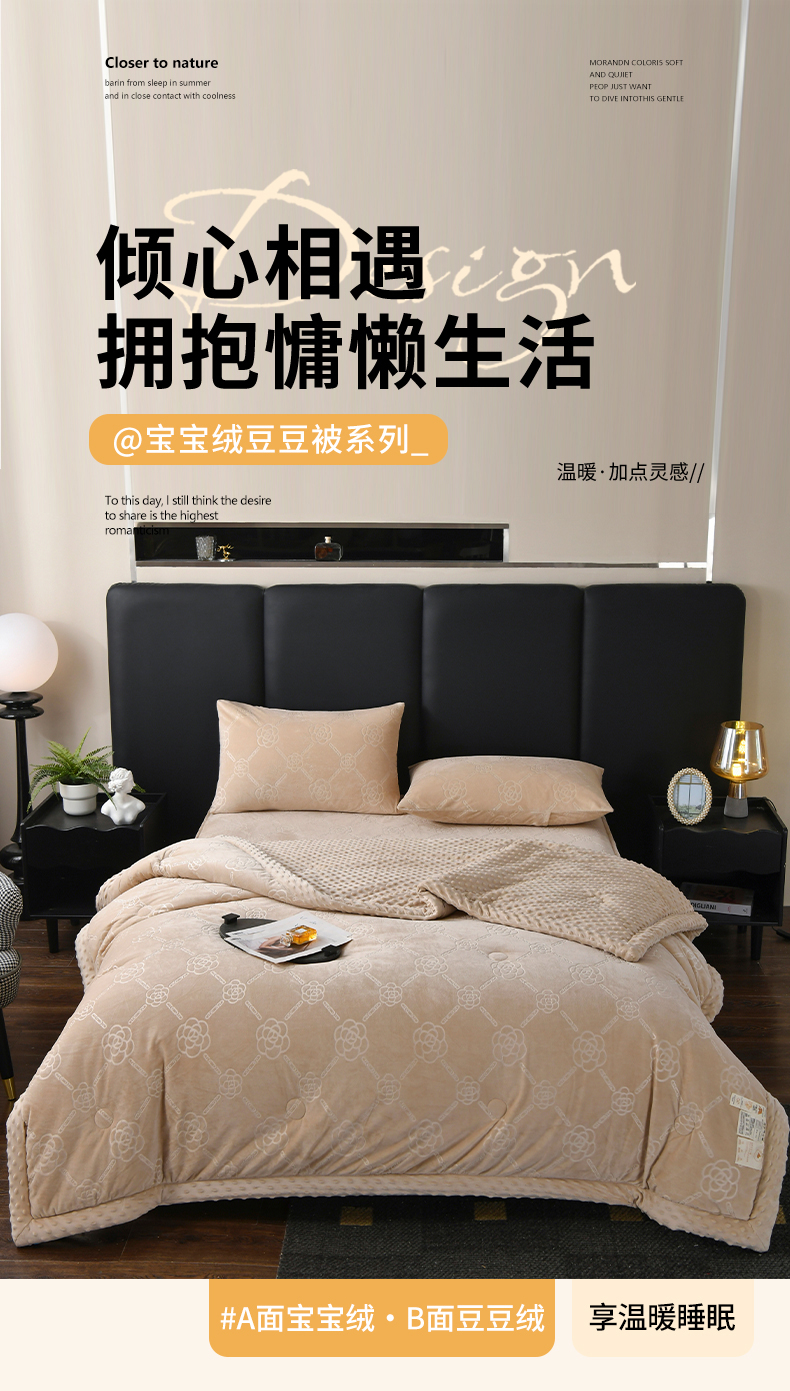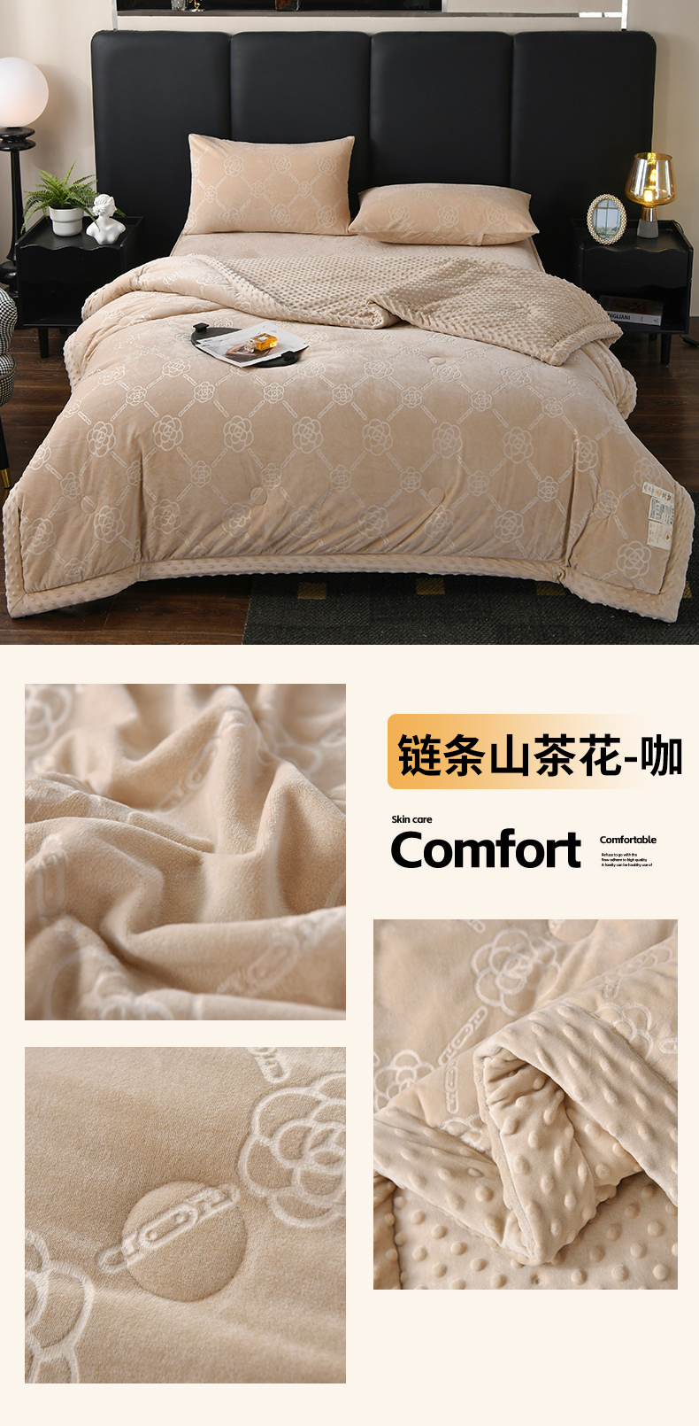 商品名称:鑫顺欣 2025新款纯色宝宝绒豆豆被 链条山茶花咖