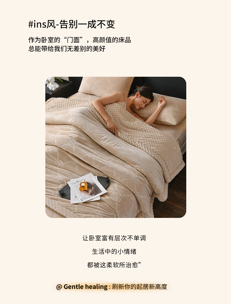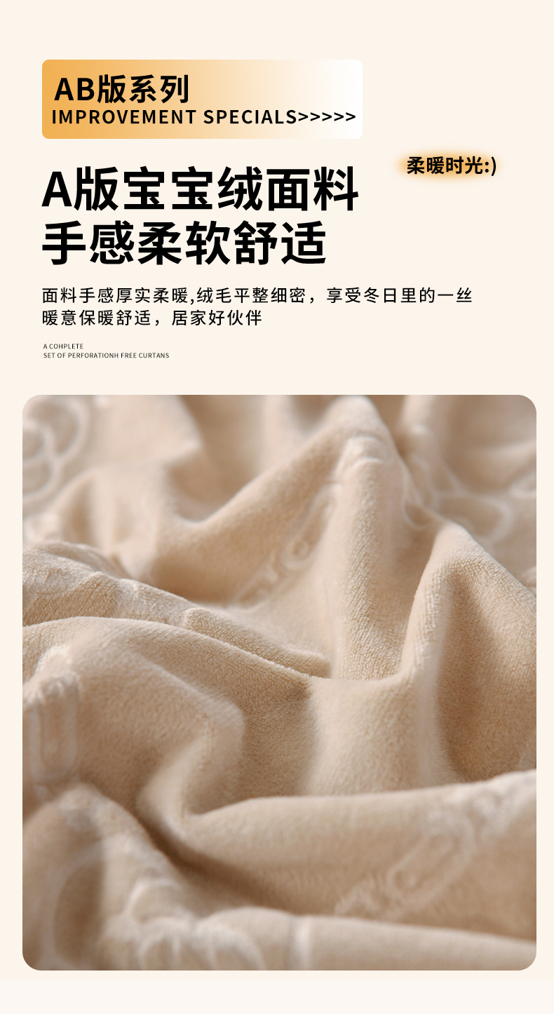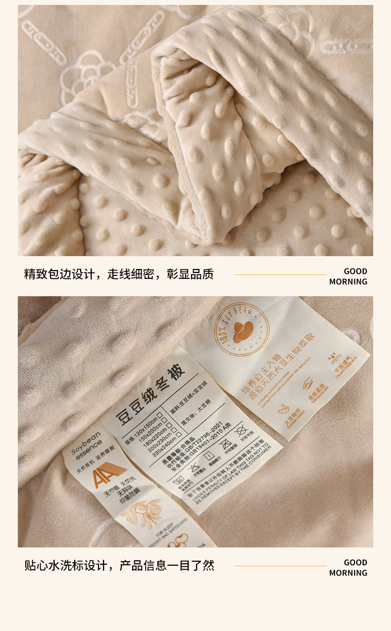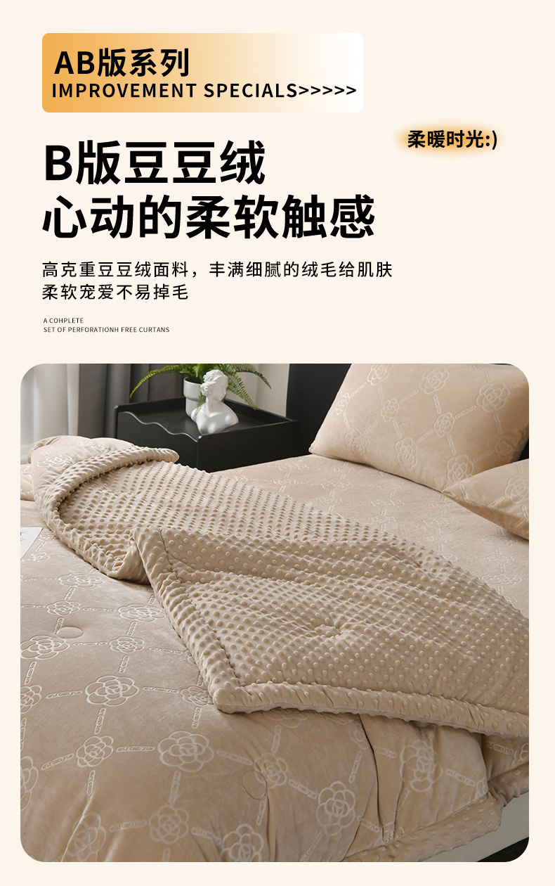 商品名称:鑫顺欣 2025新款纯色宝宝绒豆豆被 链条山茶花咖