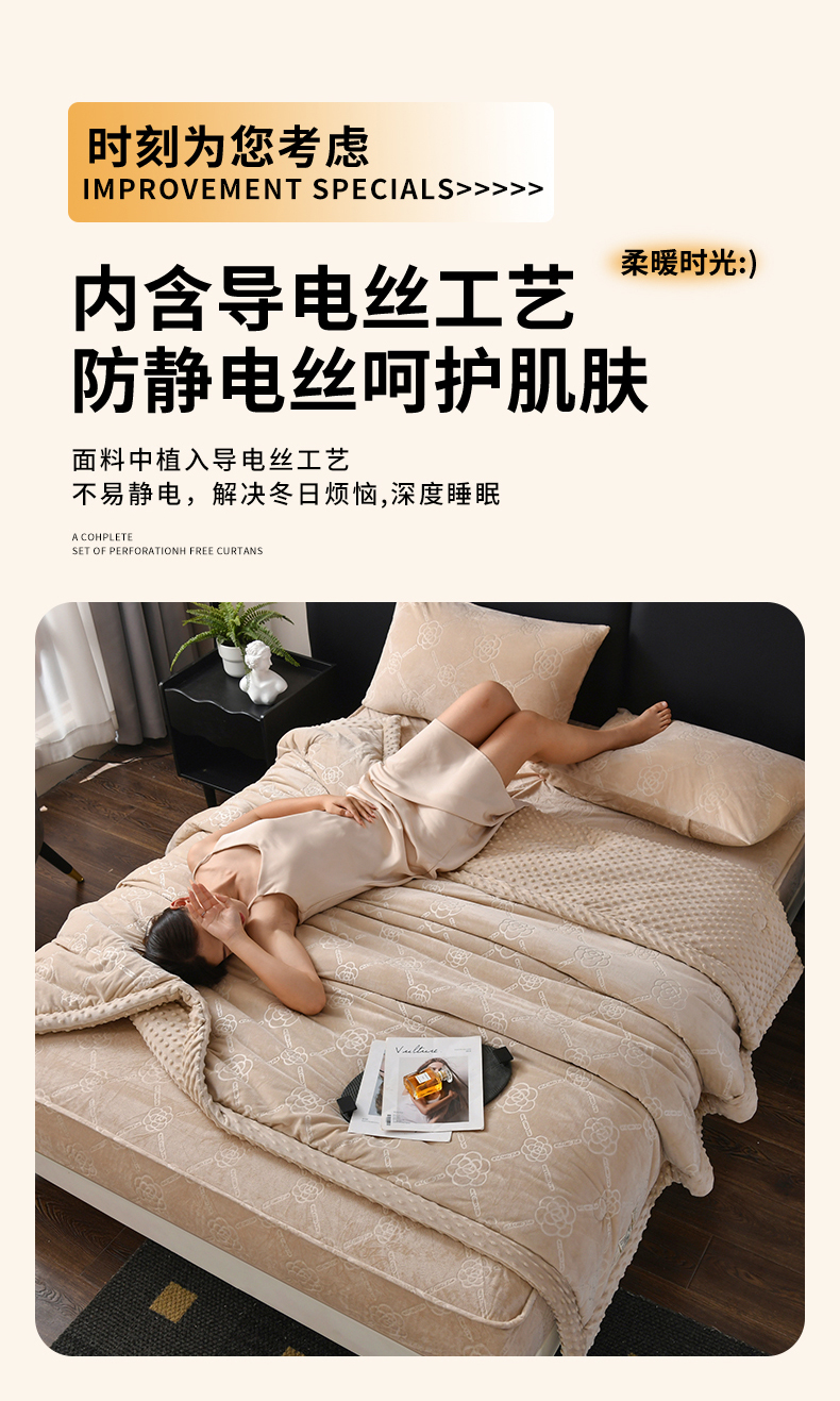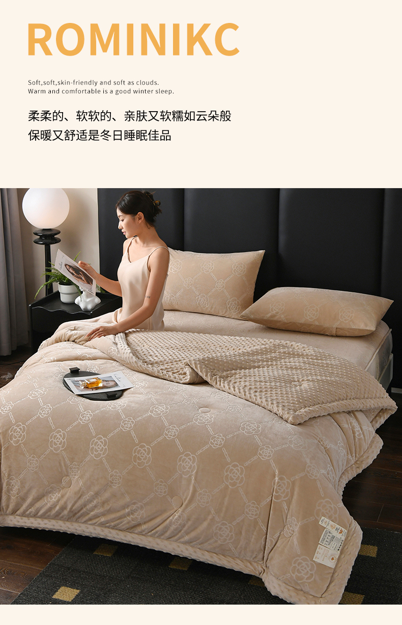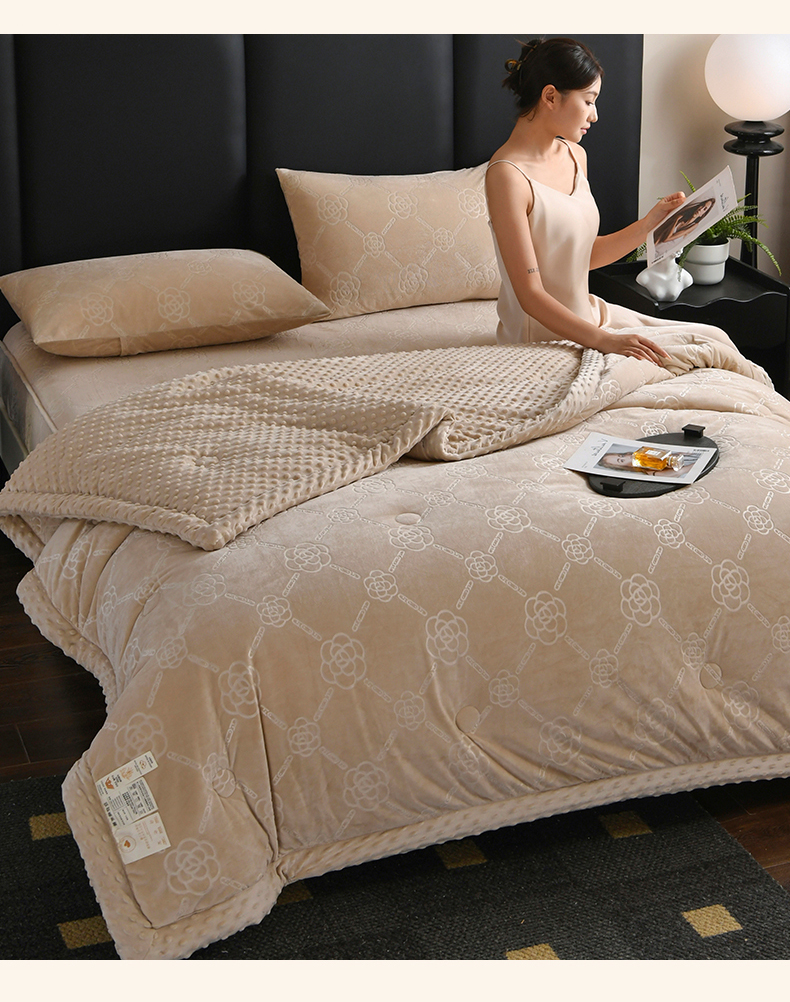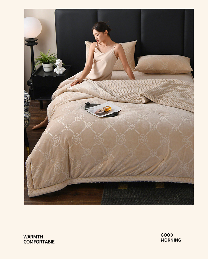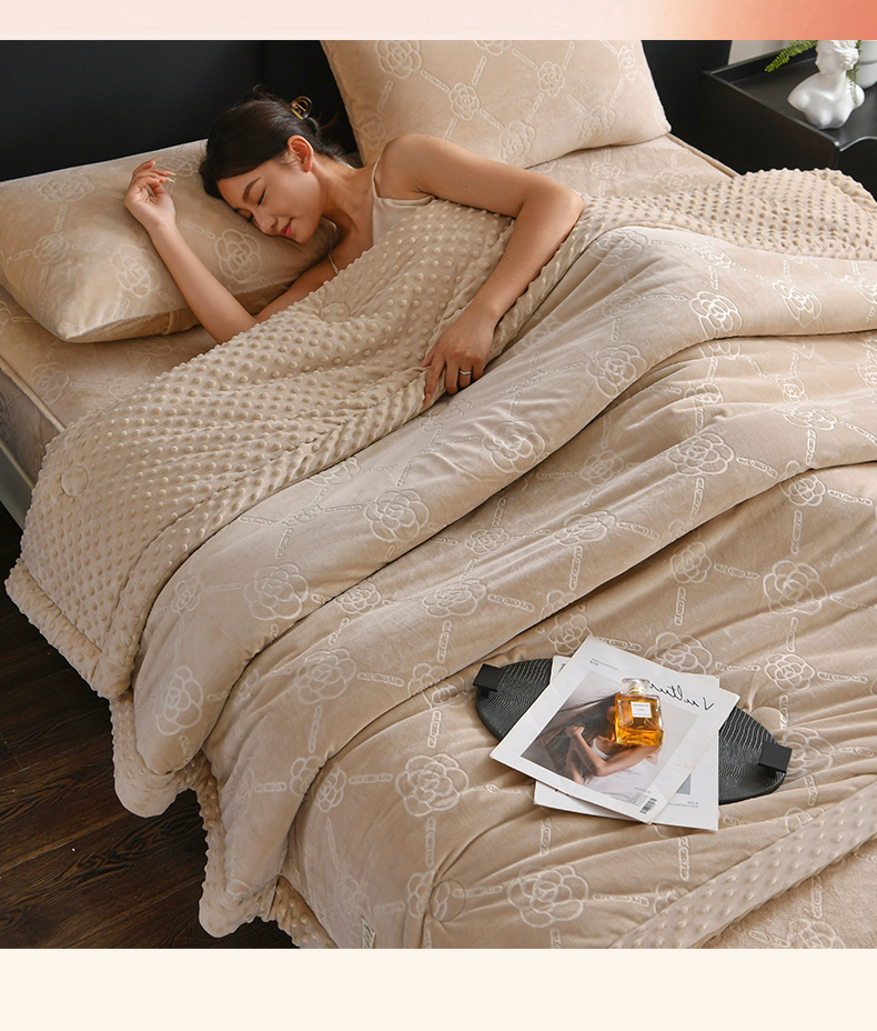 鑫顺欣 2025新款纯色宝宝绒豆豆被 链条山茶花咖