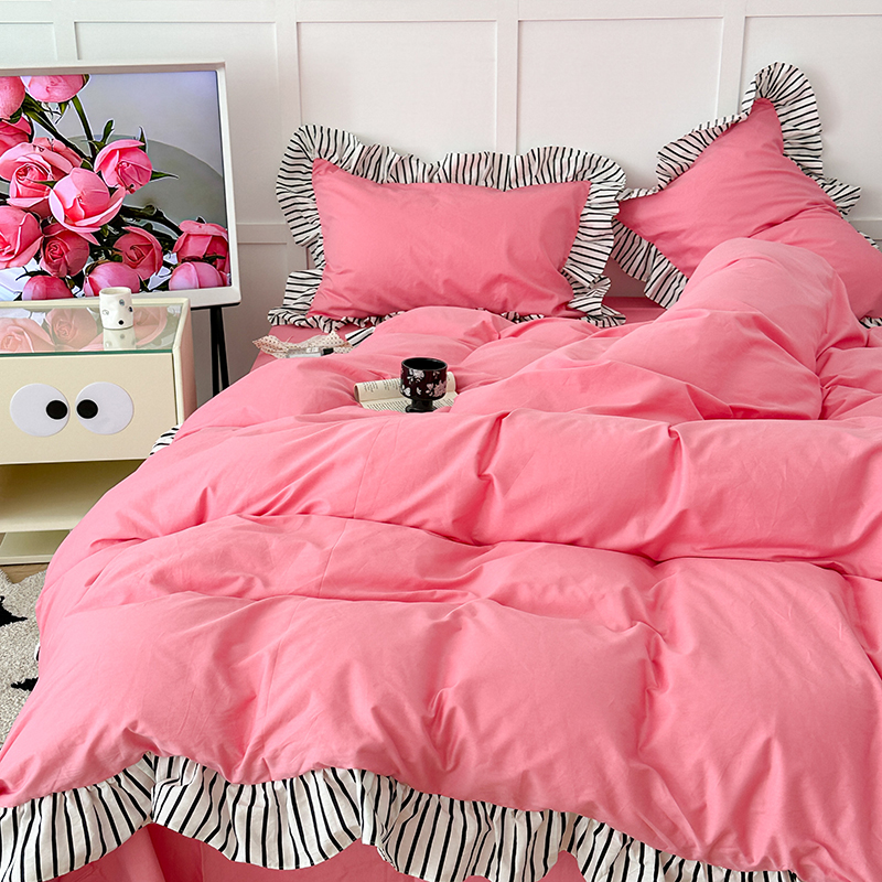 商品名称:昔可家纺 2024新款纯色亲肤条纹花边四件套 千禧黑条