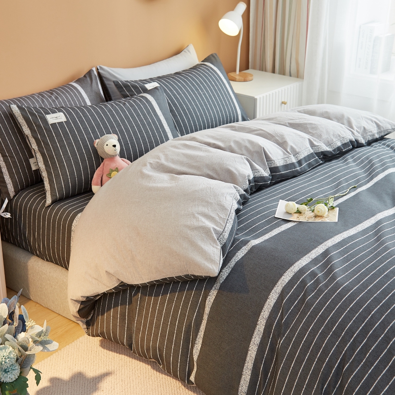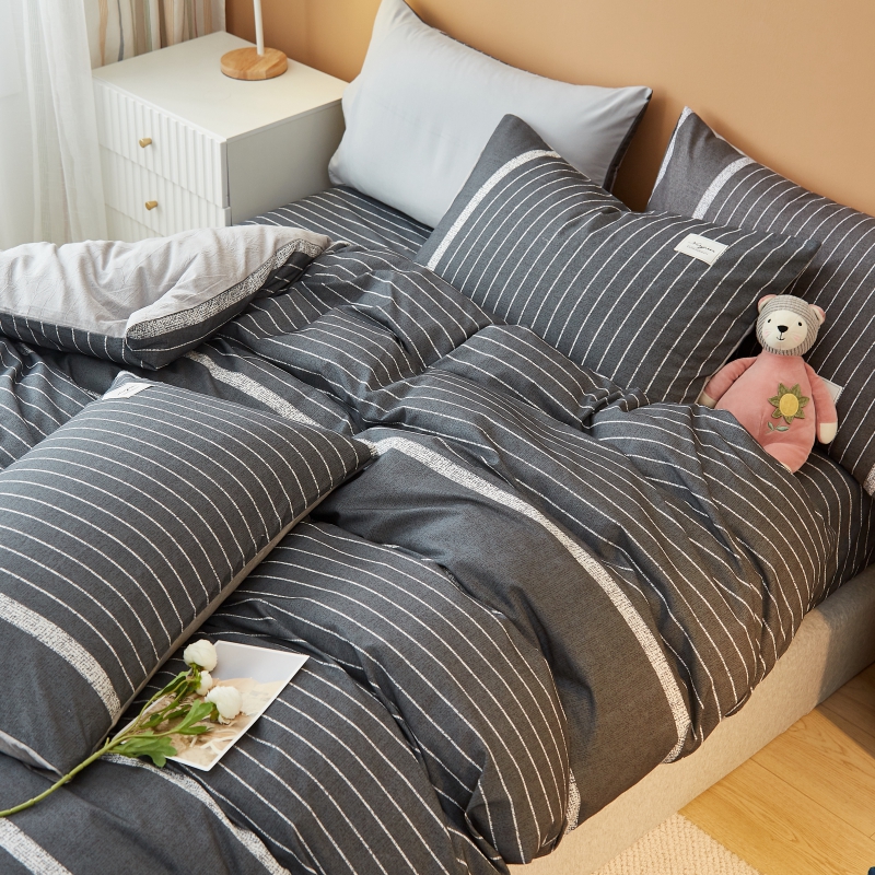 2024新款无印风水洗棉亲肤简约学生三件套 深灰细条