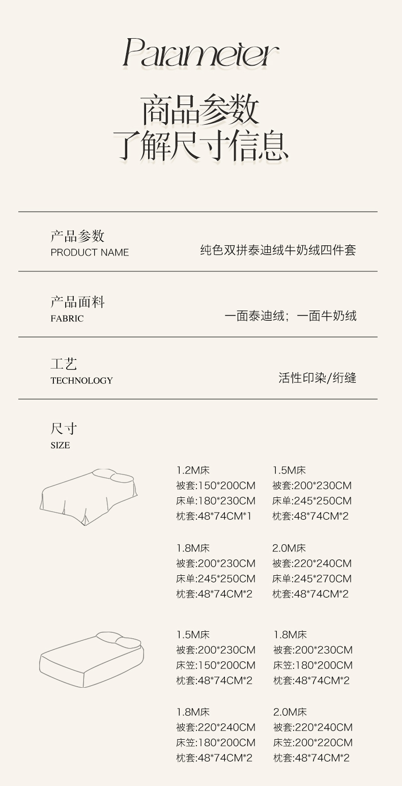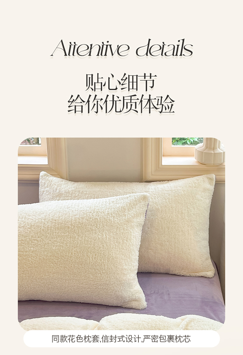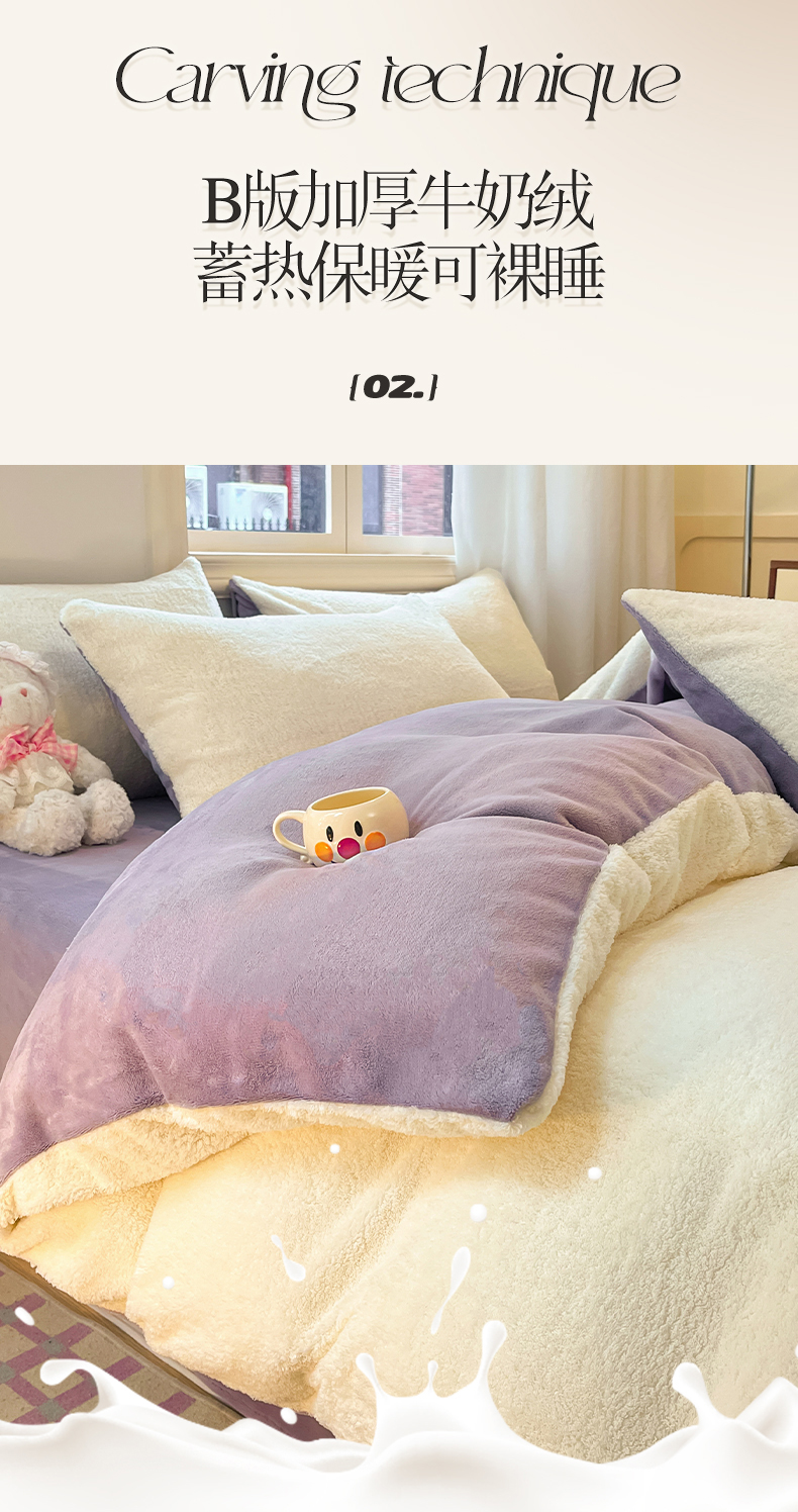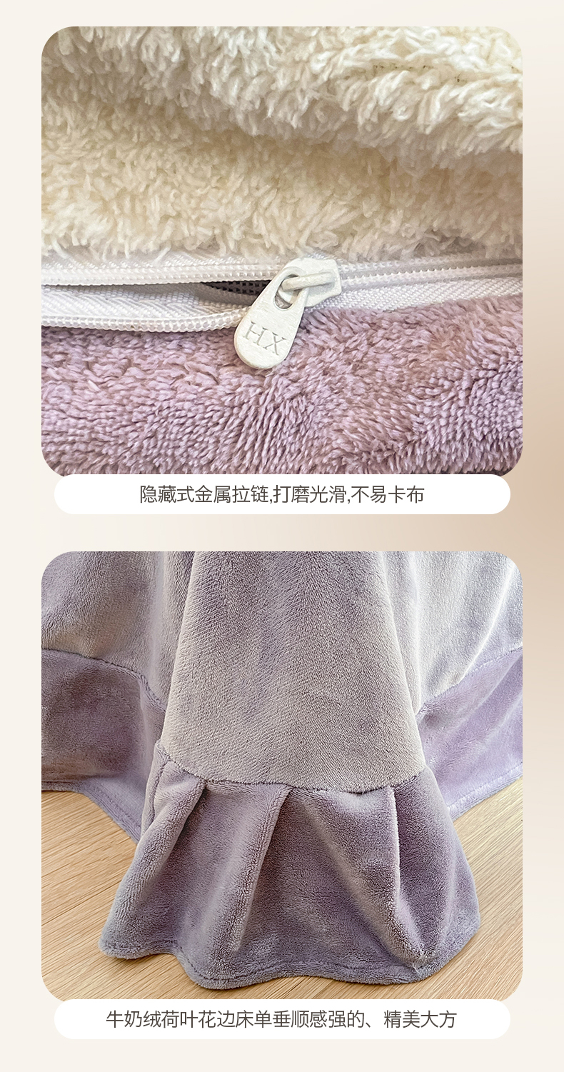 商品名称:绘萱家居 2024新款高克重泰迪绒纯色牛奶绒四件套双拼法莱绒珊瑚绒 泰迪绒-米白+灰紫