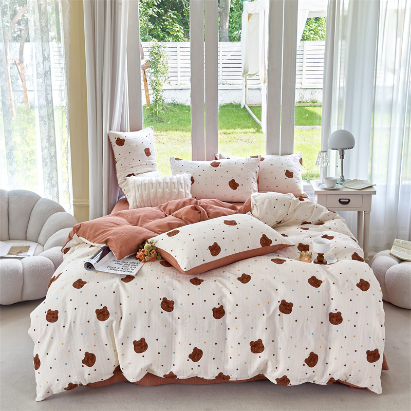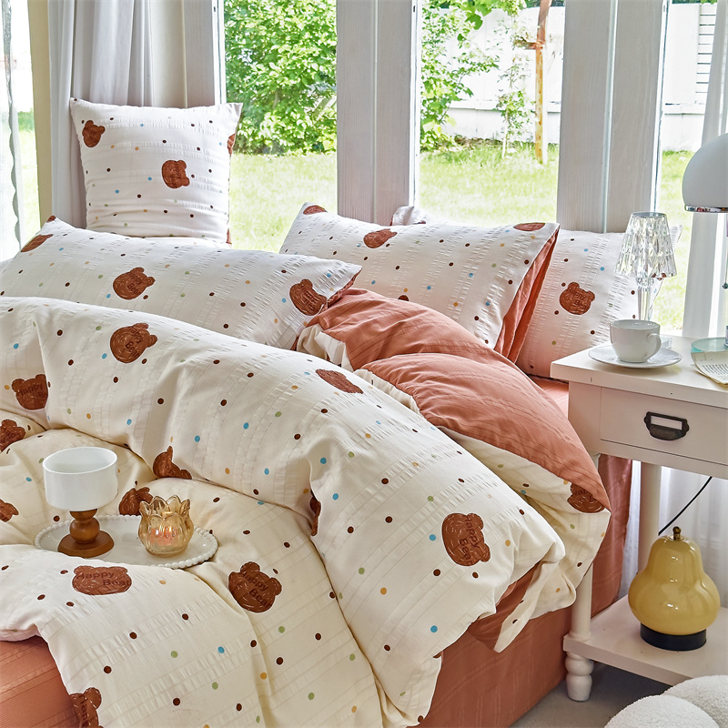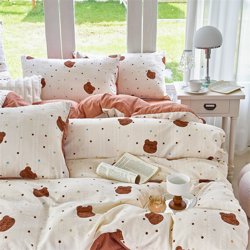 梦莱斯 2024新款A类云纱棉四件套现货供应波点小熊