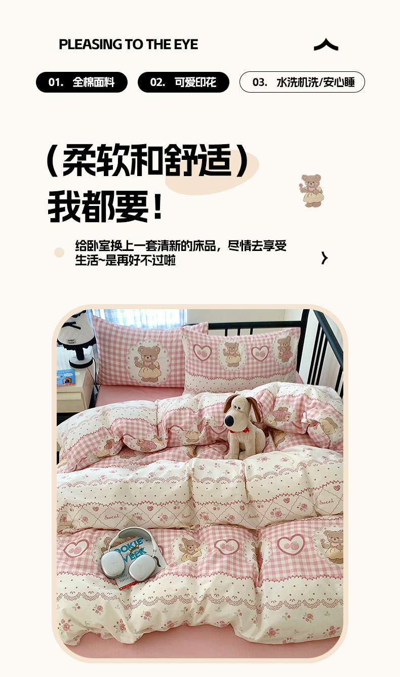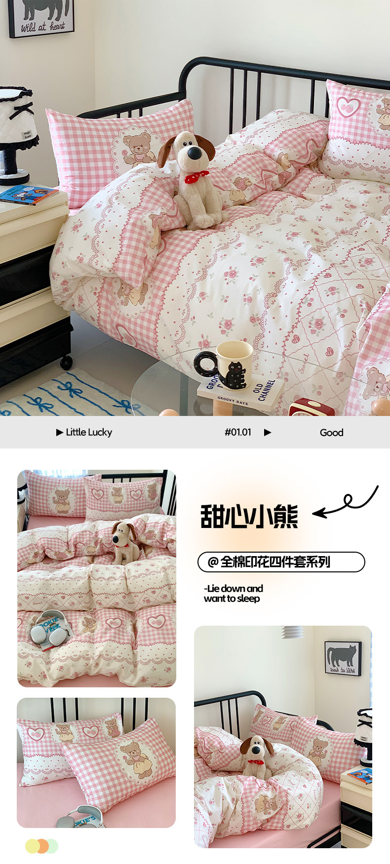 美乐迪家纺 2024新款全棉印花混搭系列四件套 甜心小熊