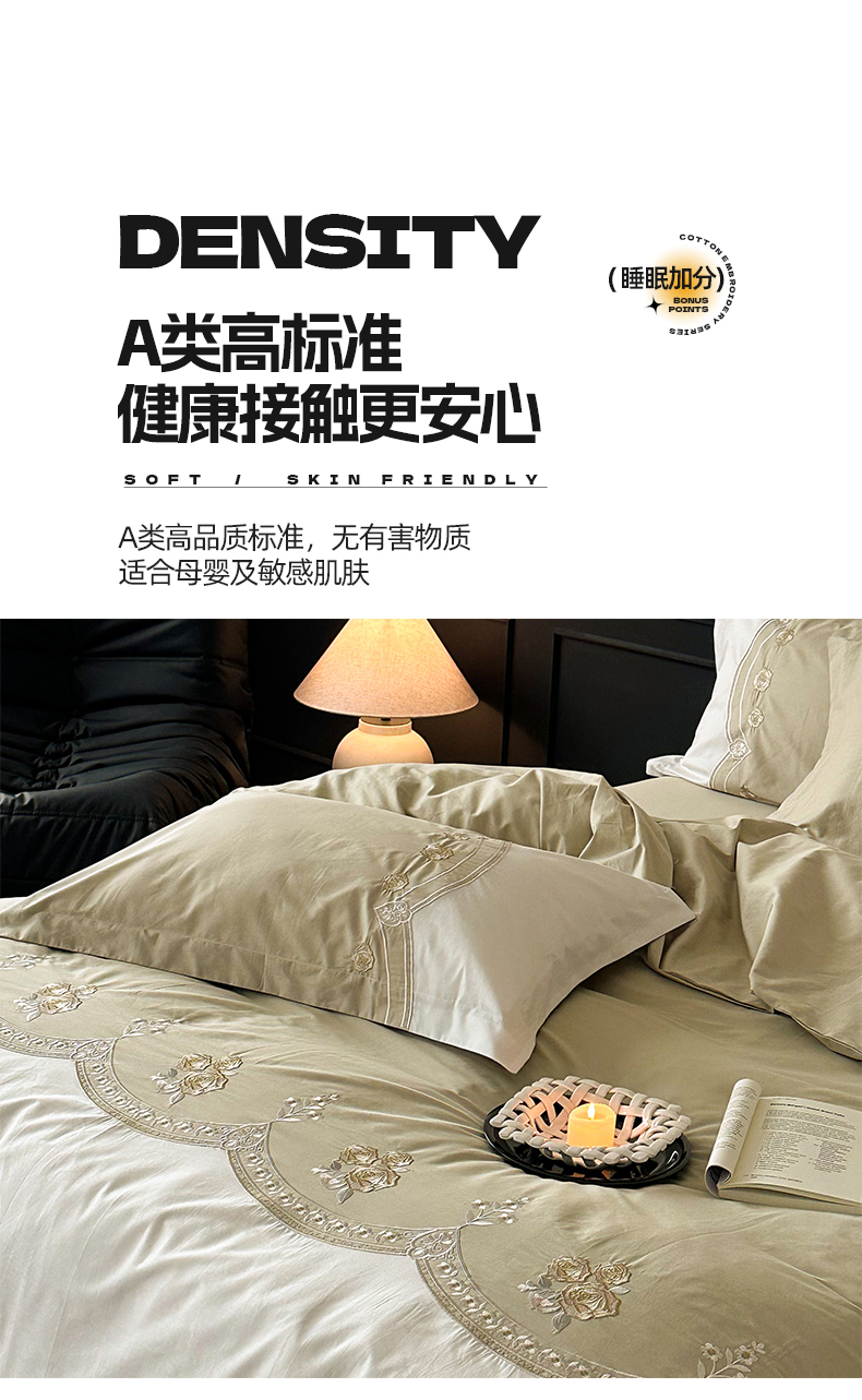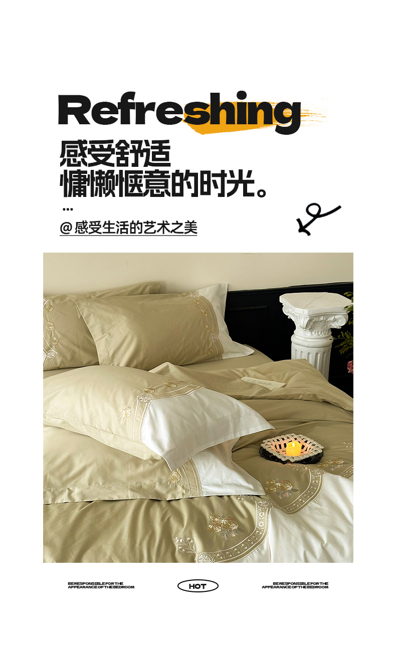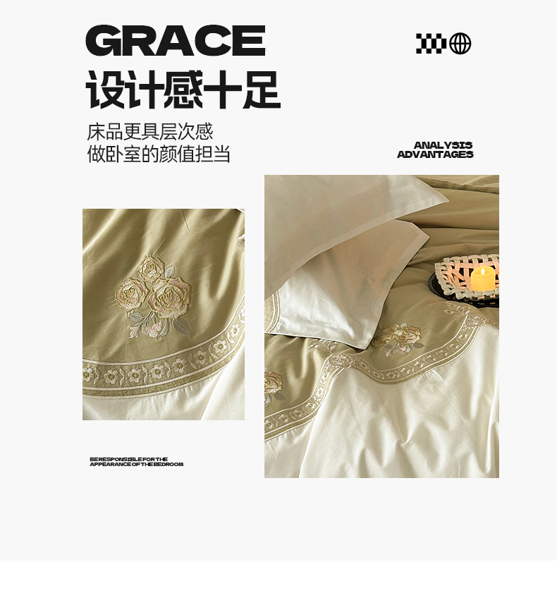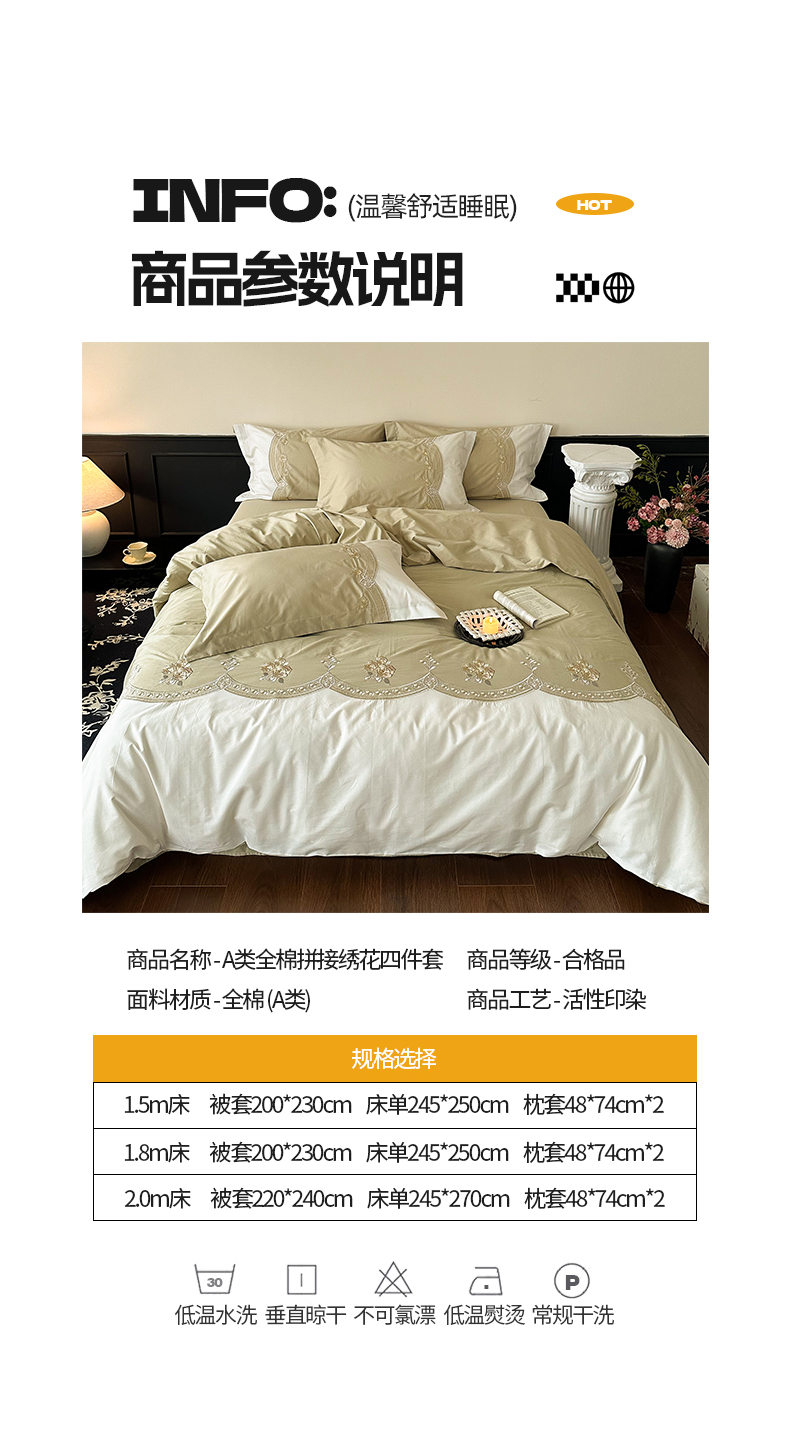 商品名称:懒猫家纺 2024新款全棉拼接绣花套件四件套 橄榄绿