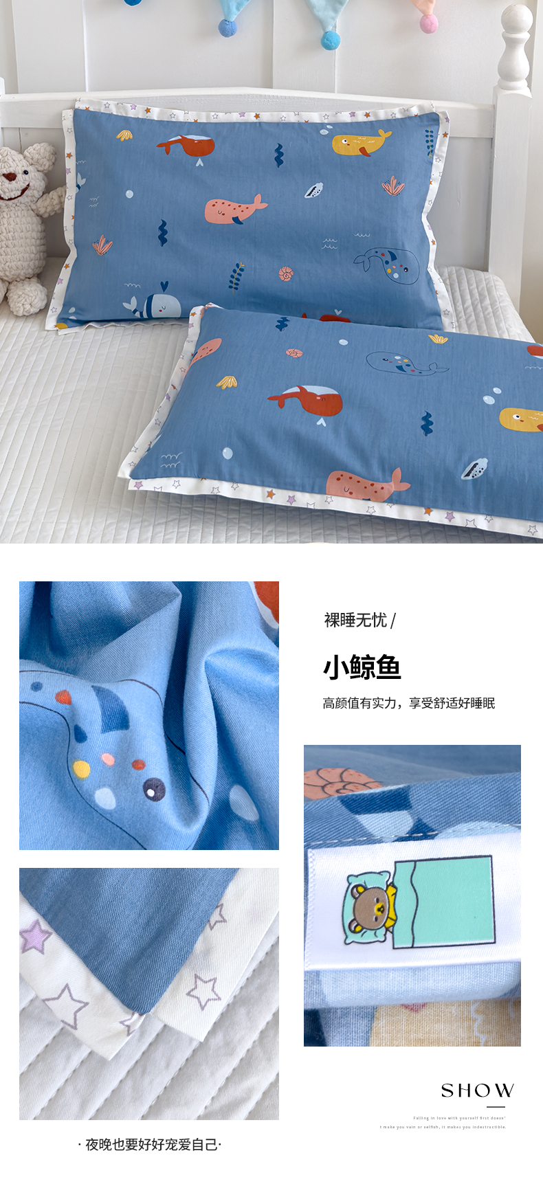 商品名称:2024新款A类133x72铂金全棉枕套枕头枕芯七彩童年系列 枕套+枕芯-棚拍图 小鲸鱼