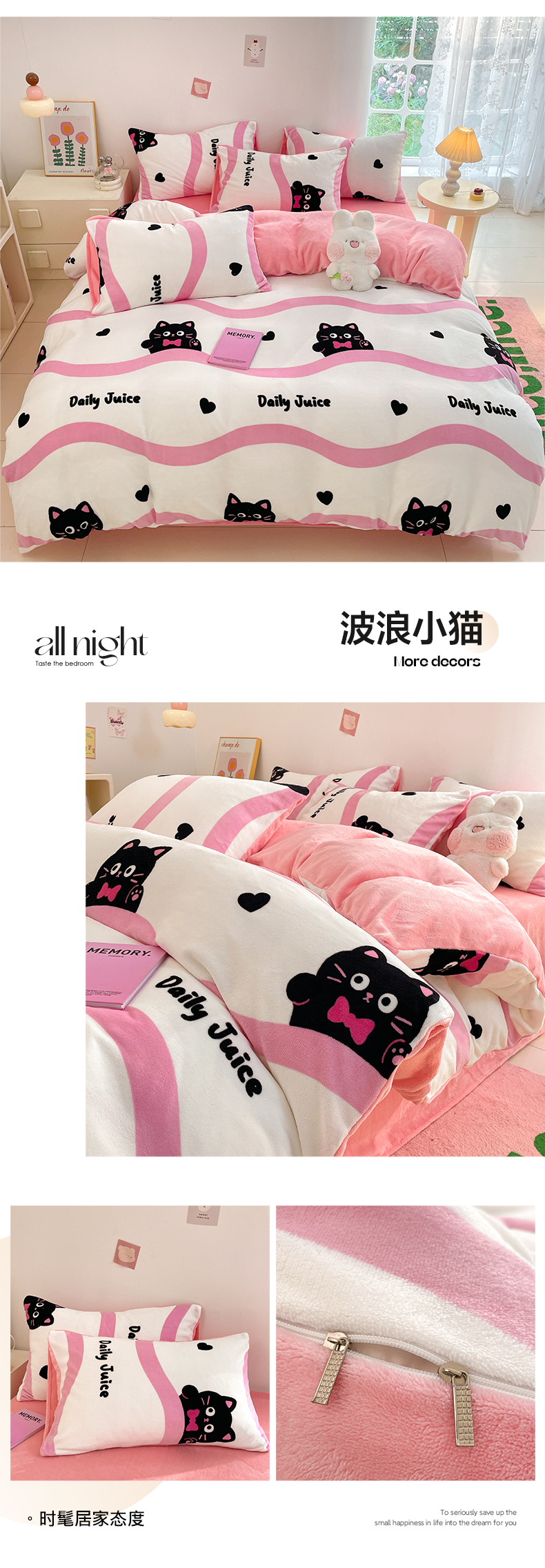 当前位置: 91家纺网 > 商品网购 > 床品套件 > 四件套 > 牛奶绒四件套 > 莱米家纺 2024新款7斤重牛奶绒卡通小版四件套系列 波浪小猫