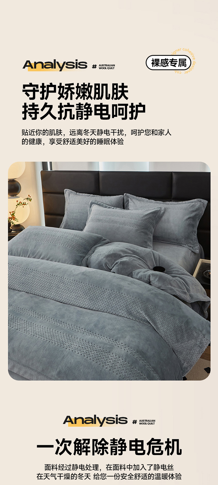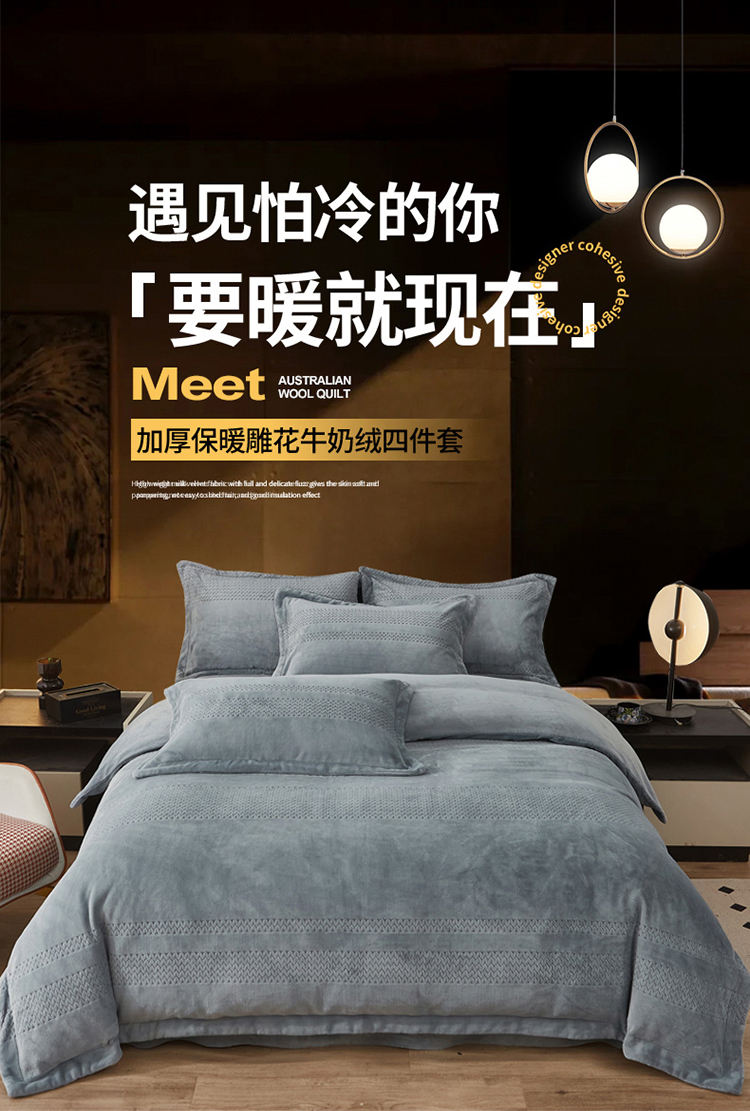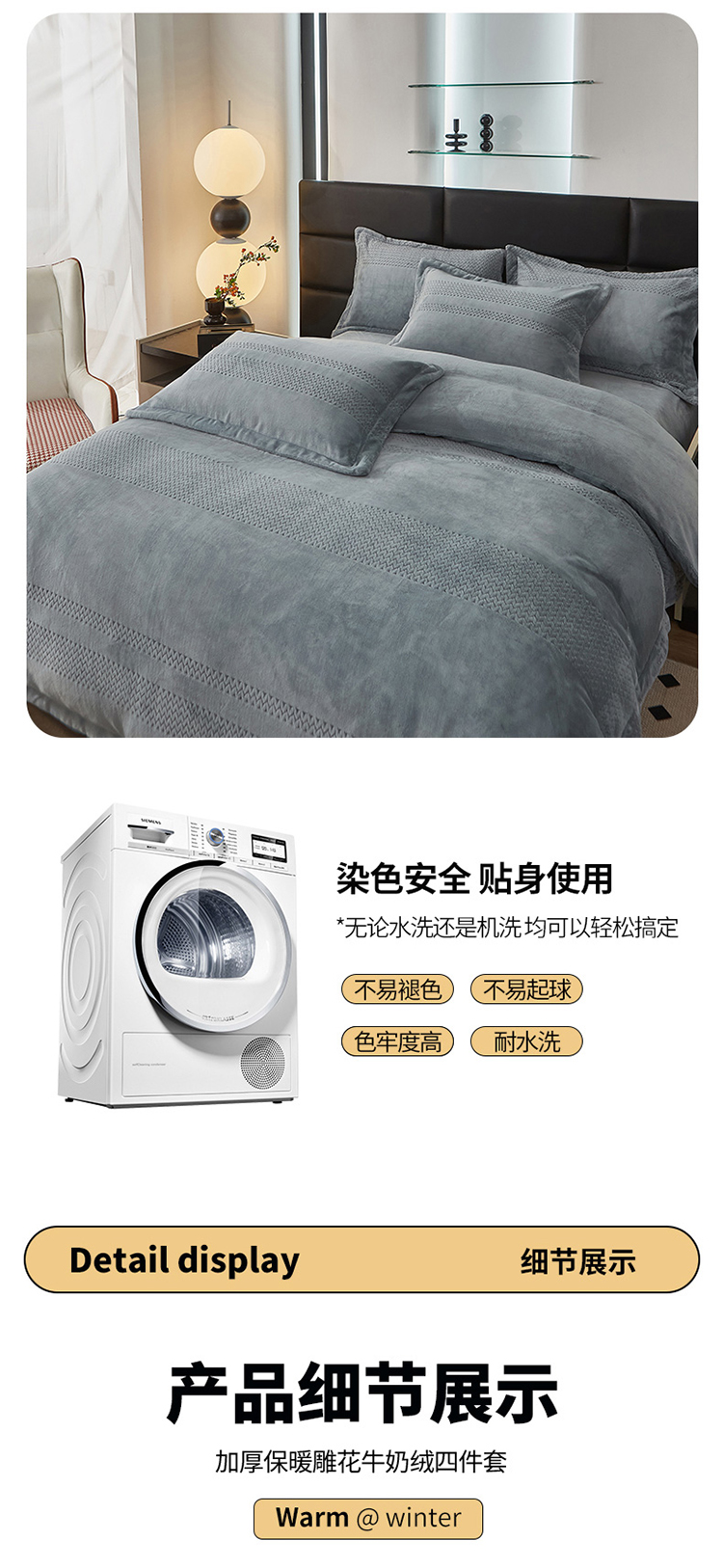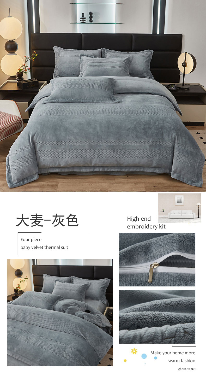 商品名称:绣女坊 2024新款雕花绒-大麦四件套 大麦-灰色